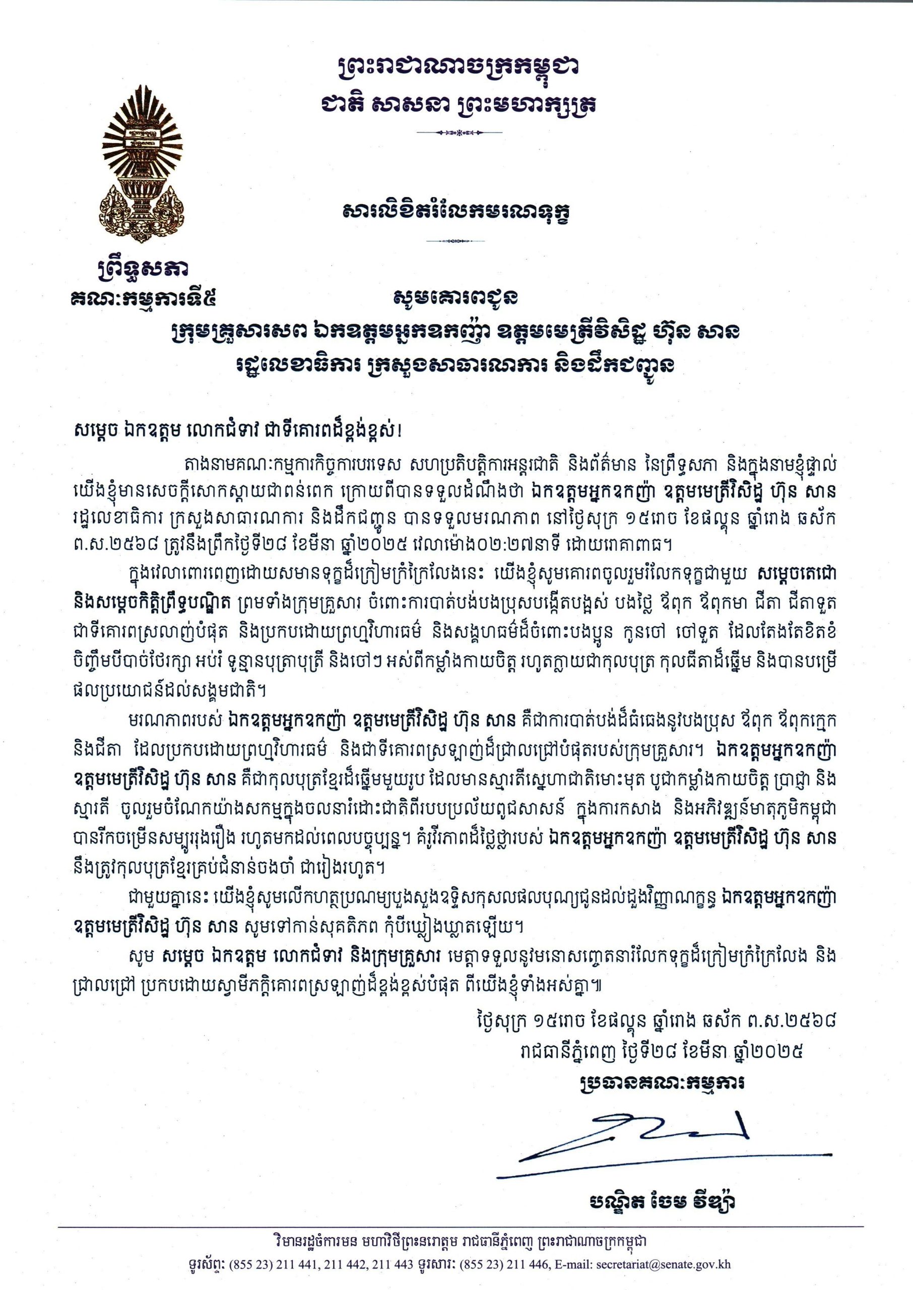 ជំនួបខាងលើនេះ ប្រព្រឹត្តទៅនៅវិមាន ៧មករា នាព្រឹកថ្ងៃទី១០ ខែកុម្ភៈ ឆ្នាំ២០២៥ វេលាម៉ោង០៨:០០នាទី…។