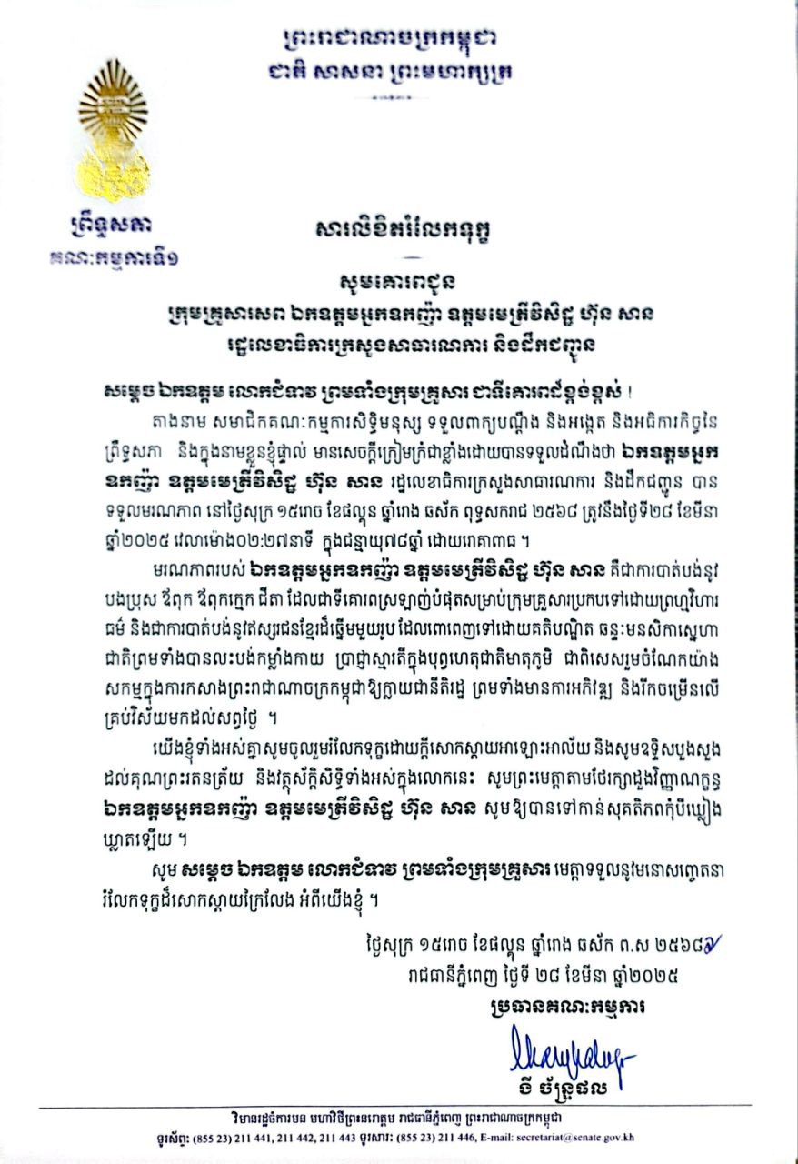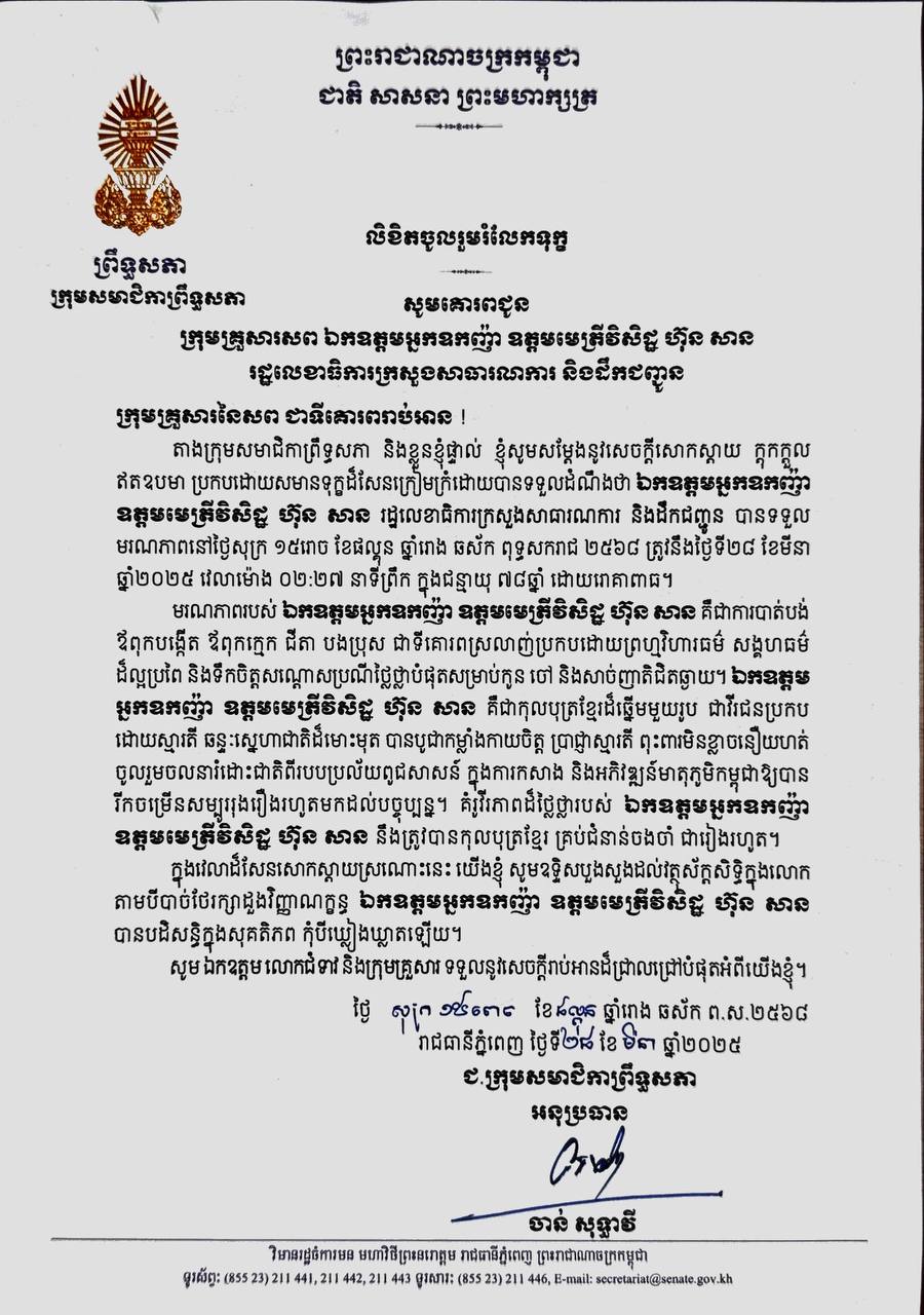សម្តេចអគ្គមហាសេនាបតីតេជោ ហ៊ុន សែន ប្រធានព្រឹទ្ធសភា នៃព្រះរាជាណាចក្រកម្ពុជា បានអនុញ្ញាតឱ្យលោកសាស្ត្រាចារ្យ TETSUYA WATANABE ប្រធានវិទ្យាស្ថានស្រាវជ្រាវសេដ្ឋកិច្ចអាស៊ាន និងអាស៊ីបូព៌ា (ERIA) ចូលជួបសម្តែងការគួរសម។