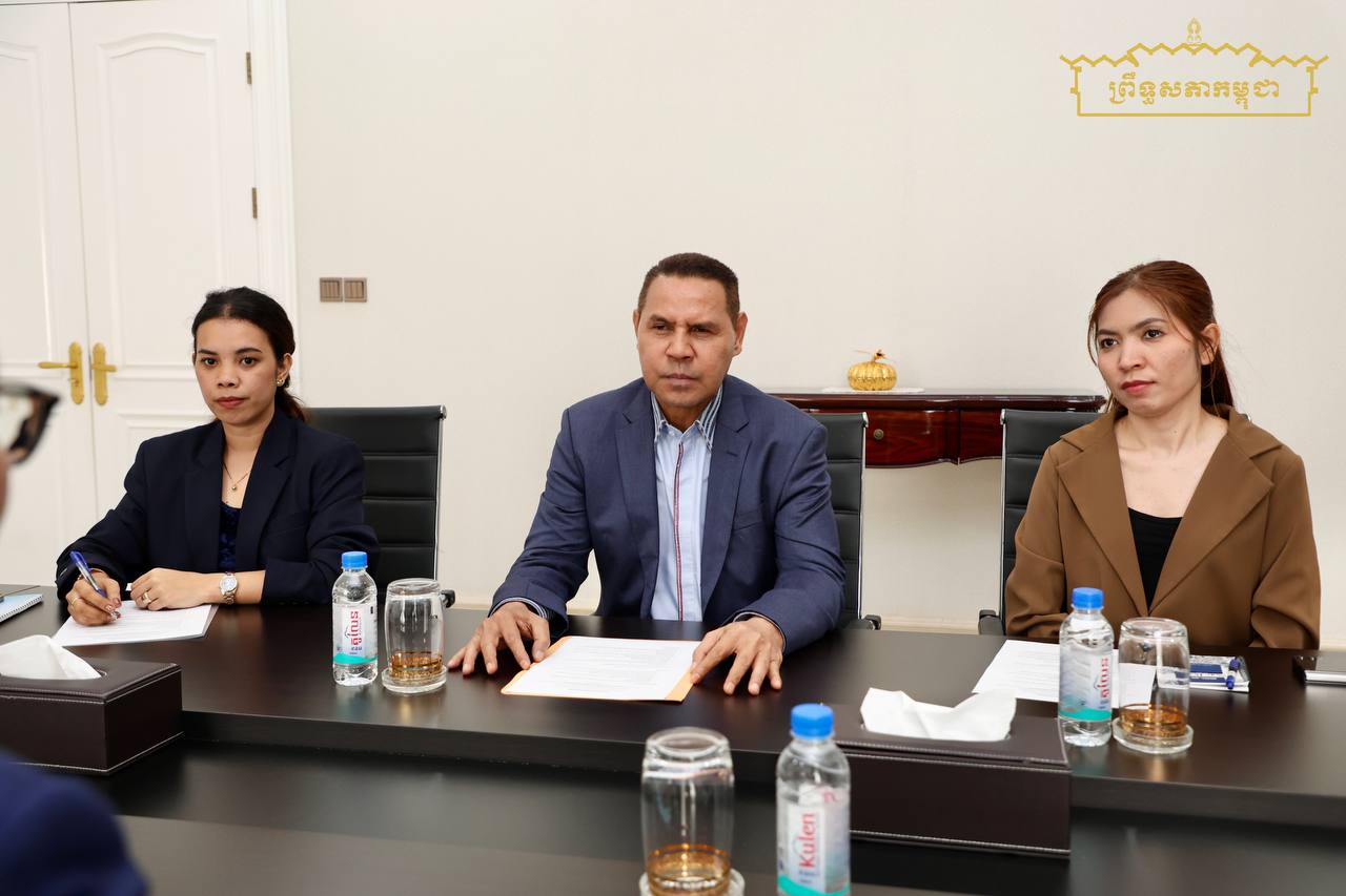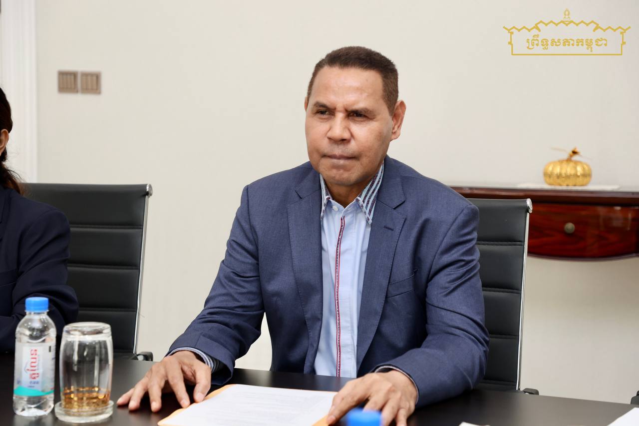 នារសៀលថ្ងៃអង្គារ ទី៨ ខែមេសា ឆ្នាំ២០២៥ ឯកឧត្តម ឡាយ សំកុល អគ្គលេខាធិការព្រឹទ្ធសភា បានទទួលជួបឯកឧត្តម Ermenegildo Kupa Lopes ឯកអគ្គរដ្ឋទូតនៃសាធារណរដ្ឋប្រជាធិបតេយ្យទីម័រឡេស្តេប្រចាំព្រះរាជាណាចក្រកម្ពុជា ដើម្បីពិភាក្សាការងារ និងផ្លាស់ប្តូរយោបល់លើទំនាក់ទំនងទ្វេភាគីនៃប្រទេស និងស្ថាប័នទាំងពីរ និងអំពីការបន្តជម្រុញនូវកិច្ចសហប្រតិបត្តិការរវាងសភានិងសភា ឲ្យកាន់តែល្អប្រសើរ និងទទួលបានលទ្ធផលផ្លែផ្កា សម្រាប់ជាប្រយោជន៍រួមនៃប្រទេសទាំងពីរ នៅបន្ទប់ប្រជុំឯកឧត្តមអគ្គលេខាធិការ។