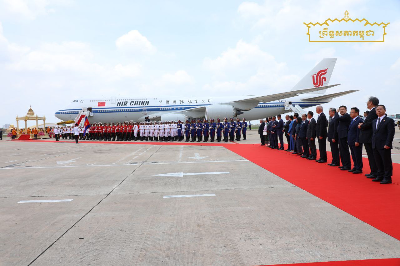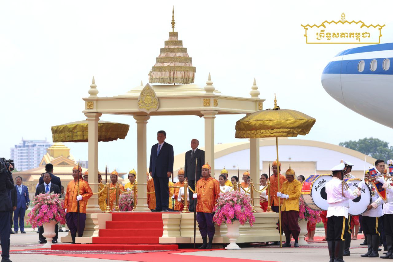 នាព្រឹកថ្ងៃព្រហស្បតិ៍ ទី១៧ ខែមេសា ឆ្នាំ២០២៥ នៅអាកាសយានដ្ឋានអន្តរជាតិភ្នំពេញ សម្តេចអគ្គមហាសេនាបតីតេជោ ហ៊ុន សែន ប្រធានព្រឹទ្ធសភា នៃព្រះរាជាណាចក្រកម្ពុជា បានអញ្ជើញដង្ហែព្រះករុណាព្រះបាទសម្តេចព្រះបរមនាថ នរោត្តម សីហមុនី ព្រះមហាក្សត្រនៃព្រះរាជាណាចក្រកម្ពុជា ស្តេចយាងទទួលបដិសណ្ឋារកិច្ចស្វាគមន៍ដំណើរទស្សនកិច្ចរបស់គណៈប្រតិភូជាន់ខ្ពស់ដឹកនាំដោយឯកឧត្តម ស៊ី ជីនពីង ប្រធានាធិបតី នៃសាធារណរដ្ឋប្រជាមានិតចិន អញ្ជើញមកបំពេញទស្សនកិច្ចផ្លូវរដ្ឋនៅព្រះរាជាណាចក្រកម្ពុជា ពីថ្ងៃទី១៧ ដល់១៨ ខែមេសា ឆ្នាំ២០២៥…។