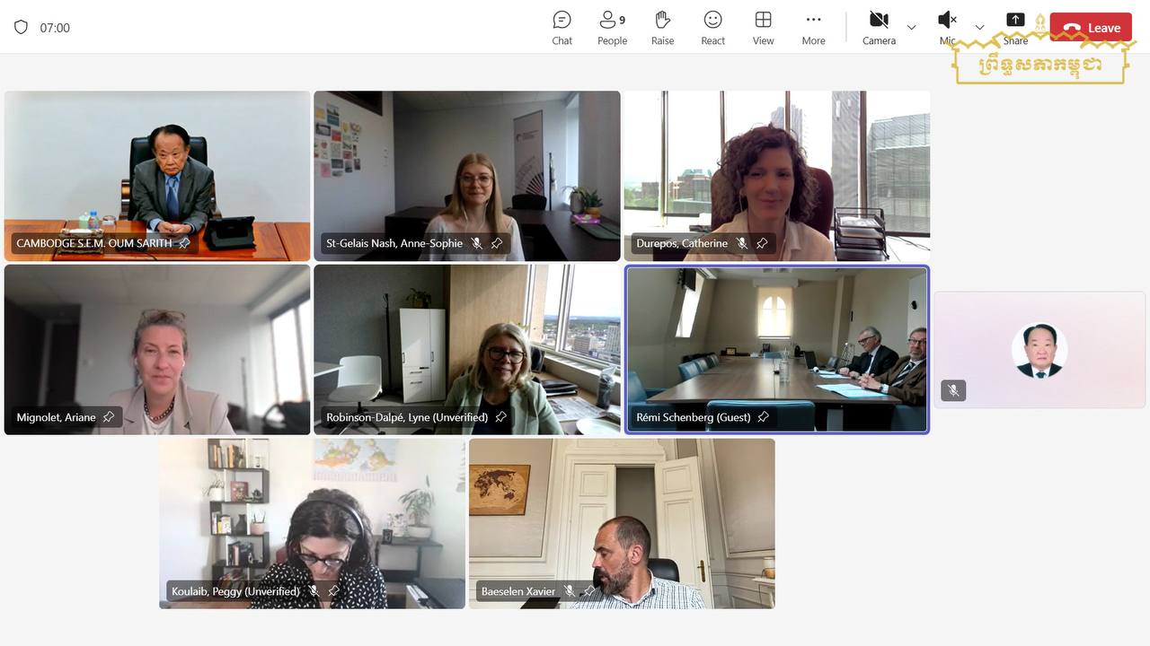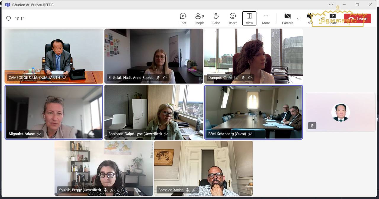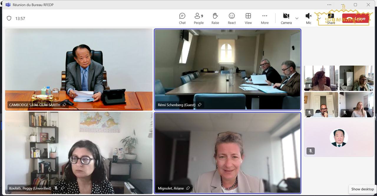 នាយប់ថ្ងៃព្រហស្បតិ៍ ទី៥ ខែមិថុនា ឆ្នាំ២០២៥ វេលាម៉ោង១៩:៣០នាទីដល់ម៉ោង២២:០០នាទី ម៉ោងនៅភ្នំពេញ នៅវិមានព្រឹទ្ធសភា ឯកឧត្តម អ៊ុំ សារឹទ្ធ ប្រធានគណៈកម្មការទី៩នៃព្រឹទ្ធសភា និងជាអនុប្រធានបណ្តាញហ្រ្វង់កូហ្វូនសីលធម៌ និងក្រមសីលធម៌សមាជិកសភា បានអញ្ជើញចូលរួមកិច្ចប្រជុំគណៈកម្មាធិការអចិន្រ្តៃយ៍ នៃបណ្តាញហ្រ្វង់កូហ្វូនសីលធម៌ និងក្រមសីលធម៌សមាជិកសភា តាមប្រព័ន្ធនិម្មិត(Visioconférence) ក្រោមអធិបតីភាព លោក Jean-Éric GICQUEL ប្រធានបណ្តាញហ្រ្វង់កូហ្វូនសីលធម៌ និងក្រមសីលធម៌សភា ផ្សាយចេញពីខេត្តកេបិច-កាណាដា ដើម្បីពិភាក្សាកម្មវិធី និងប្រធានបទសម្រាប់មហាសន្និបាតប្រចាំឆ្នាំនៃបណ្តាញ ហ្រ្វង់កូហ្វូនសីលធម៌ និងក្រមសីលធម៌សមាជិកសភា ដែលនឹងប្រព្រឹត្តទៅពីថ្ងៃទី៧ ដល់ថ្ងៃទី៨ ខែកក្កដា ឆ្នាំ២០២៥ នៅទីក្រុងប៉ារីស សាធារណរដ្ឋបារាំង។