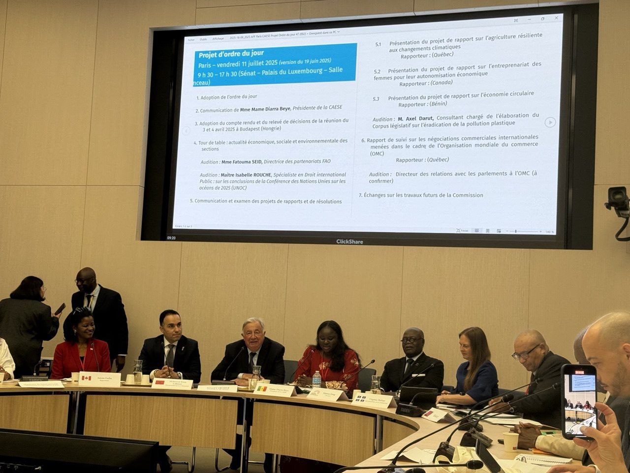 នៅថ្ងៃសុក្រ ទី១១ ខែកក្កដា ឆ្នាំ២០២៥ នៅវិមានលុចសំបួ ព្រឹទ្ធសភាបារាំង ក្នុងឱកាសកិច្ចប្រជុំប្រចាំឆ្នាំលើកទី៥០ នៃសភាប្រើភាសាបារាំង ឯកឧត្តមបណ្ឌិត ចែម វីឌ្យ៉ា ប្រធានគណៈកម្មការទី៥ព្រឹទ្ធសភា និងជាអនុប្រធានគណៈកម្មាធិការប្រតិបត្តិនៃក្រុមសភាជាតិកម្ពុជានៃសភាប្រើភាសាបារាំង បានអញ្ជើញចូលរួមពិធីបើកកិច្ចប្រជុំគណៈកម្មការកិច្ចការសេដ្ឋកិច្ច សង្គម និងបរិស្ថាន ក្រោមអធិបតីភាព ឯកឧត្តម Gérard LARCHER ប្រធានព្រឹទ្ធសភាបារាំង និងបានបន្តអញ្ជើញចូលរួមកិច្ចប្រជុំគណៈកម្មការសេដ្ឋកិច្ច សង្គមនិងបរិស្ថាន ក្រោមការដឹកនាំដោយលោកស្រីMame Diarra BEYE តំណាងរាស្រ្តសេណេហ្គាល់ និងជាប្រធានគណៈកម្មការកិច្ចការសេដ្ឋកិច្ច សង្គម និងបរិស្ថាននៃសភាប្រើភាសាបារាំង។ អំឡុងកិច្ចប្រជុំ ឯកឧត្តមបណ្ឌិត ចែម វីឌ្យ៉ា បានថ្លែងអន្តរាគមន៍ អំពីបច្ចុប្បន្នភាពសេដ្ឋកិច្ច សង្គម និងបរិស្ថានសង្គមនៅកម្ពុជា។