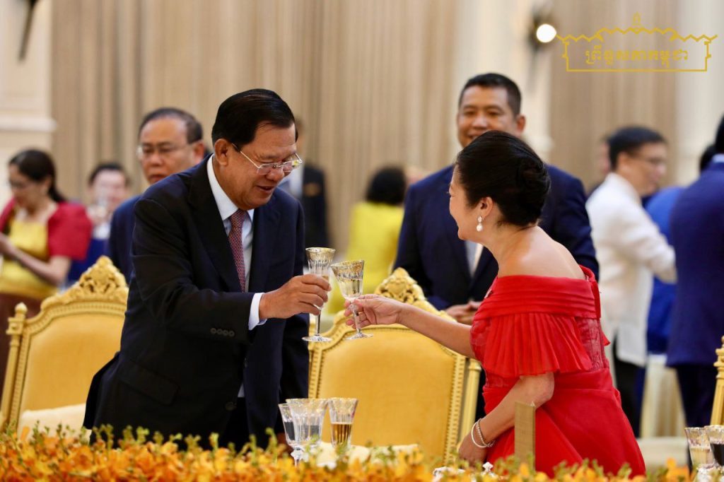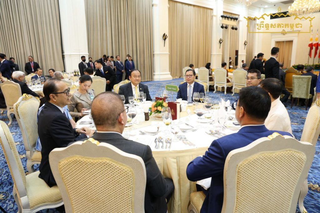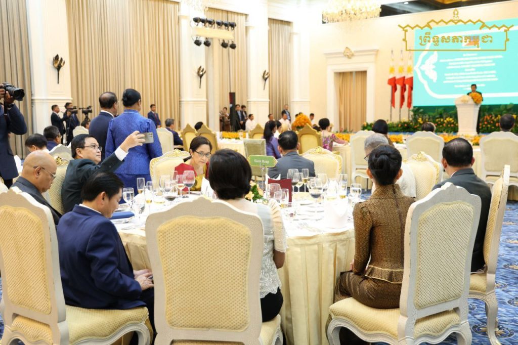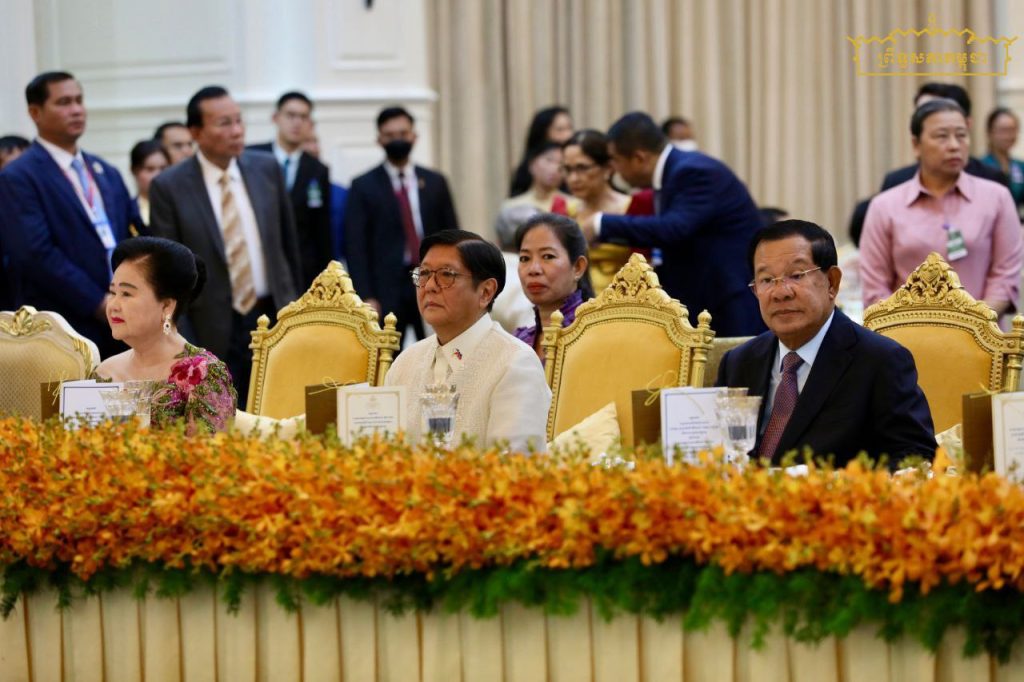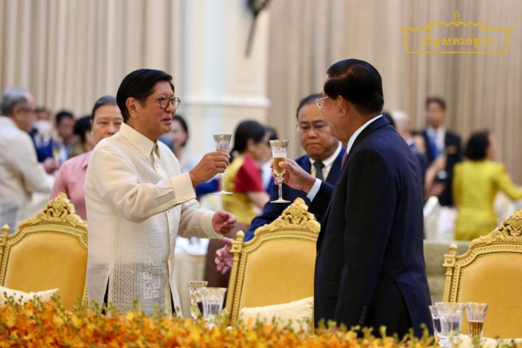 នាយប់ថ្ងៃទី៨ ខែសីហា ឆ្នាំ២០២៥ សម្តេចអគ្គមហាសេនាបតីតេជោ ហ៊ុន សែន ប្រមុខរដ្ឋស្ដីទី នៃព្រះរាជាណាចក្រកម្ពុជា និងសម្តេចកិត្តិព្រឹទ្ធបណ្ឌិត ប៊ុន រ៉ានី ហ៊ុនសែន បានអញ្ជើញរៀបចំពិធីជប់លៀងផ្លូវរដ្ឋ ជូនឯកឧត្តម Ferdinand Romualdez Marcos Jr. (ហ្វឺឌីណាន់ រ៉ូម៉ូលដេស ម៉ាកូស ជូញៀ) ប្រធានាធិបតី នៃសាធារណរដ្ឋហ្វីលីពីន និងលោកជំទាវ Louise Araneta-Marcos (លូអ៊ីស អារ៉ាណេតា ម៉ាកូស) នៅវិមានសន្តិភាព…។