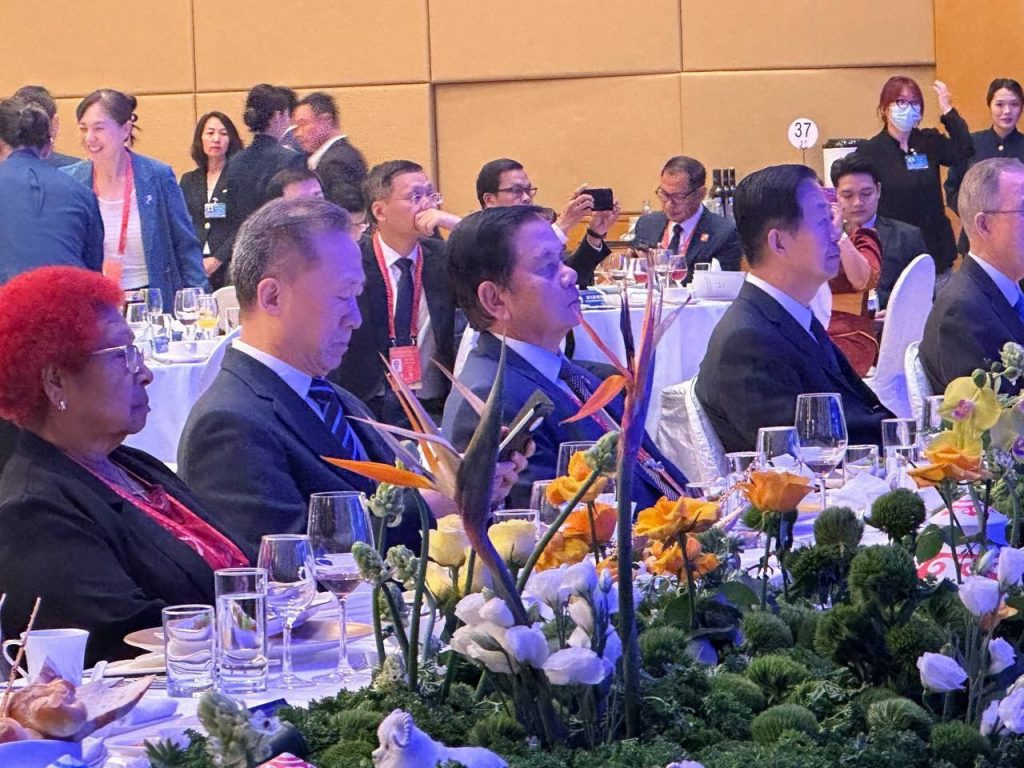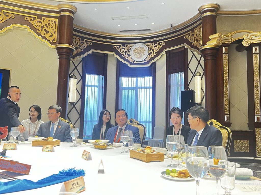 នៅក្នុងឱកាសដាច់ដោយឡែកមួយទៀត ឯកឧត្តមអនុប្រធានទី១ បានអញ្ជើញពិសាអាហារថ្ងៃត្រង់ដែលរៀបចំដោយឯកឧត្តម Huang Zhiqiang សមាជិកគណៈកម្មាធិការអចិន្រ្តៃយ៍ នៃគណៈកម្មាធិការតំបន់ស្វយ័ត Inner Mongolia នៃបក្សកុម្មុយនីស្តចិន និងជាអនុប្រធានប្រតិបត្តិនៃតំបន់ស្វយ័ត Inner Mongolia និង ឯកឧត្តម Yang Jin អនុប្រធានតំបន់ស្វយ័ត Inner Mongolia។ ក្នុងបរិយាកាសប្រកបដោយភាពរីករាយ និងស្និទ្ធស្នាលបំផុត ឯកឧត្តមអនុប្រធានទី១ បានសម្ដែងក្ដីសេចក្តីសោមនស្សរីករាយ និងថ្លែងអំណរគុណចំពោះឯកឧត្តម Huang Zhiqiang និង ឯកឧត្តម Yang Jin សម្រាប់ការទទួលស្វាគមន៍យ៉ាងកក់ក្តៅ និងការរៀបចំពិធីពិសាអាហារថ្ងៃត្រង់ដ៏មានអត្ថន័យនេះ។ ការជួបជុំពិសាថ្ងៃត្រង់នេះក៏ជាឱកាសសម្រាប់ពង្រឹងចំណងមិត្តភាព និងកិច្ចសហប្រតិបត្តិការរវាងកម្ពុជា និងសាធារណរដ្ឋប្រជាមានិតចិន និយាយជារួម និងរវាងកម្ពុជា និងតំបន់ស្វយ័ត