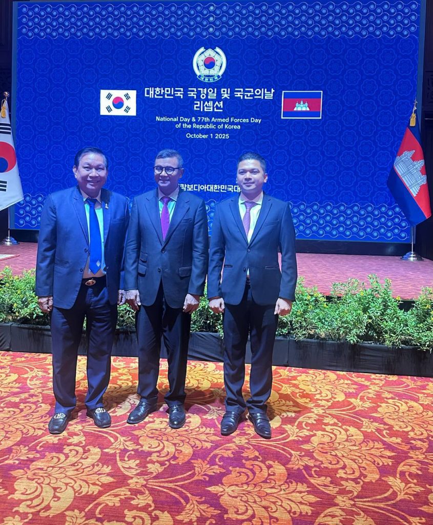នៅល្ងាចថ្ងៃទី១ ខែតុលា ឆ្នាំ២០២៥ ឯកឧត្តម ម៉ម ប៊ុននាង ប្រធានគណ:កម្មការអង្កេត បោសសម្អាត និងប្រឆាំងអំពើពុករលួយនៃព្រឹទ្ធសភា និងជាប្រធានក្រុមមិត្តភាពទ្វេភាគីព្រឹទ្ធសភាកម្ពុជា-រដ្ឋសភាកូរ៉េ រួមជាមួយសមាជិកព្រឹទ្ធសភា បានអញ្ជើញជាកិត្តិយសក្នុងពិធីជប់លៀង រៀបចំដោយស្ថានទូតនៃសាធារណរដ្ឋកូរ៉េប្រចាំកម្ពុជា ដើម្បីអបអរសាទរទិវាបុណ្យជាតិ នៃសាធារណរដ្ឋកូរ៉េ ស្ថិតនៅសណ្ឋាគារសូហ្វីតែល ភ្នំពេញ ភូគីត្រា។
