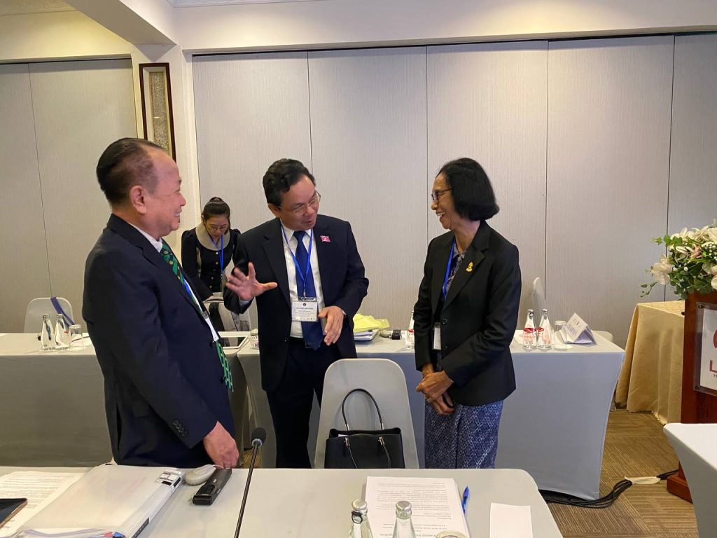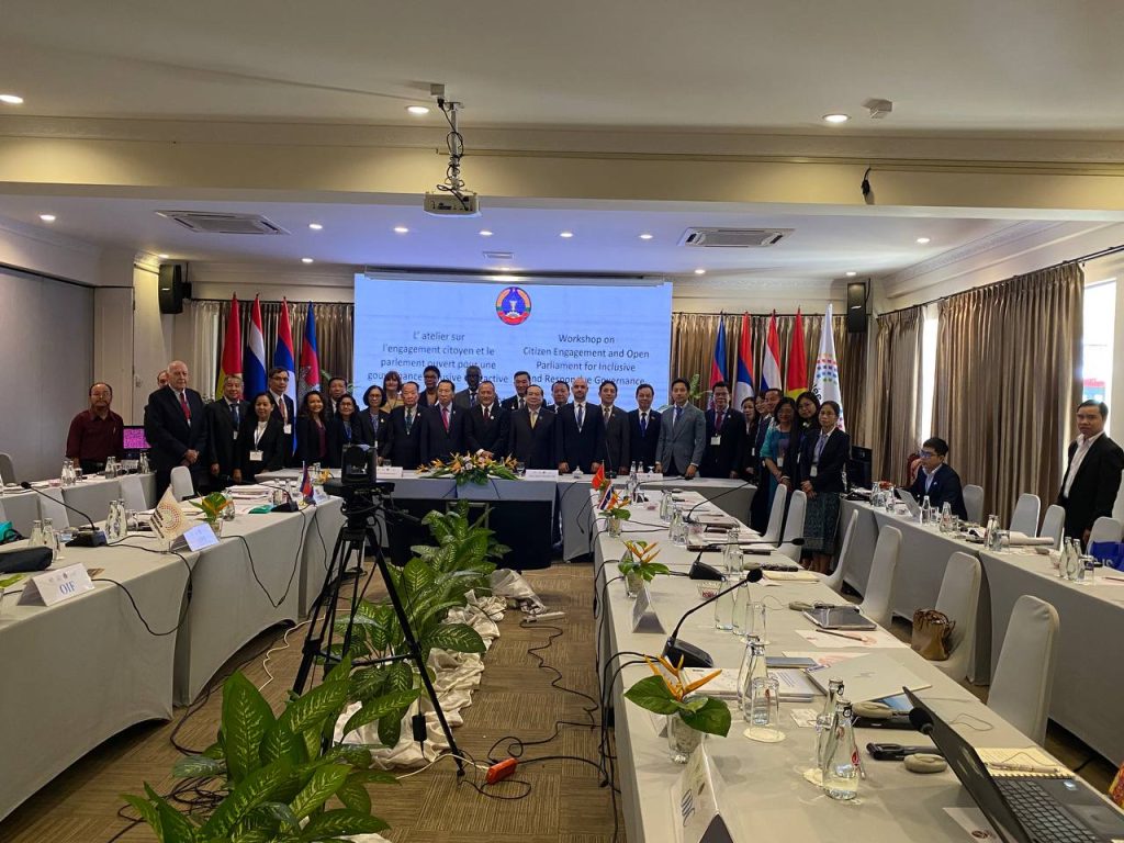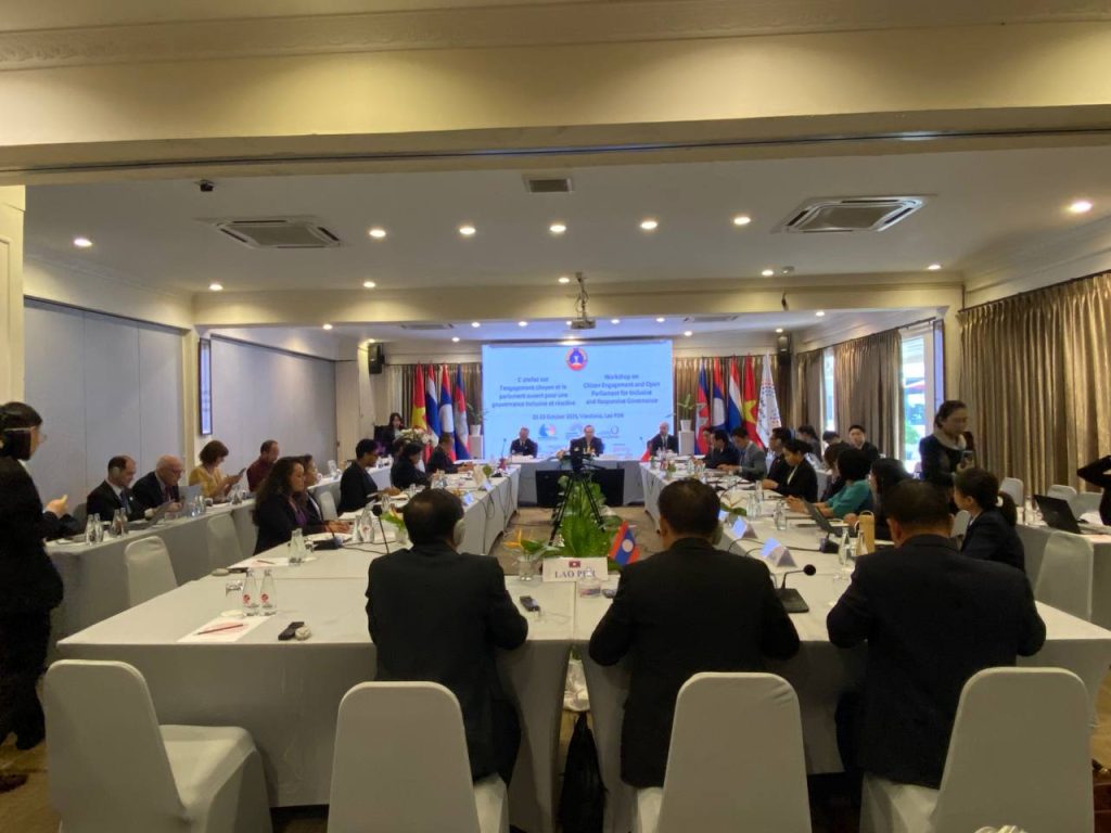 នាព្រឹកថ្ងៃពុធ ទី២២ ខែតុលា ឆ្នាំ២០២៥ នៅសណ្ឋាគារLaôtel ឯកឧត្តម អ៊ុំ សារឹទ្ធ ប្រធានគណៈកម្មការទី៩ព្រឹទ្ធសភា និងលោកជំទាវ មុំ សណ្តាប់ សមាជិកាគណៈកម្មការទី៦ព្រឹទ្ធសភា បានអញ្ជើញចូលរួមពិធីបើកសិក្ខាសាលា ស្តីពី ការចូលរួមរបស់ប្រជាពលរដ្ឋ និងសភាបើកចំហសម្រាប់អភិបាលកិច្ចប្រកបដោយបរិយាបន្ន និងឆ្លើយតប ក្រោមអធិបតីភាព ឯកឧត្តម Sanya PRASEUTH ប្រធានគណៈកិច្ចការបរទេសនៃរដ្ឋសភា ទីក្រុងវៀងចន្ទន៍ សាធារណរដ្ឋប្រជាធិបតេយ្យប្រជាមានិតឡាវ អមដោយមតិស្វាគមន៍ដោយលោកជំទាវ Amélia LAKRAFI អគ្គប្រតិភូសភាប្រើភាសាបារាំងតាមប្រព័ន្ធនិម្មិត លោក Kaloyan KOLEV តំណាងអង្គការអន្តរជាតិហ្រ្វង់កូហ្វូនប្រចាំតំបន់អាស៊ី-ប៉ាស៊ីហ្វិក និងលោក YI Chanprasnar នាយកប្រតិបត្តិមជ្ឈមណ្ឌលសភាអាស៊ី ដោយមានការចូលរួមពីសមាជិក សមាជិកាតំបន់អាស៊ី-ប៉ាស៊ីហ្វិក រួមមាន៖វៀតណាម ឡាវ ថៃឡងដ៍ និងអង្គការសង្គមស៊ីវិល។