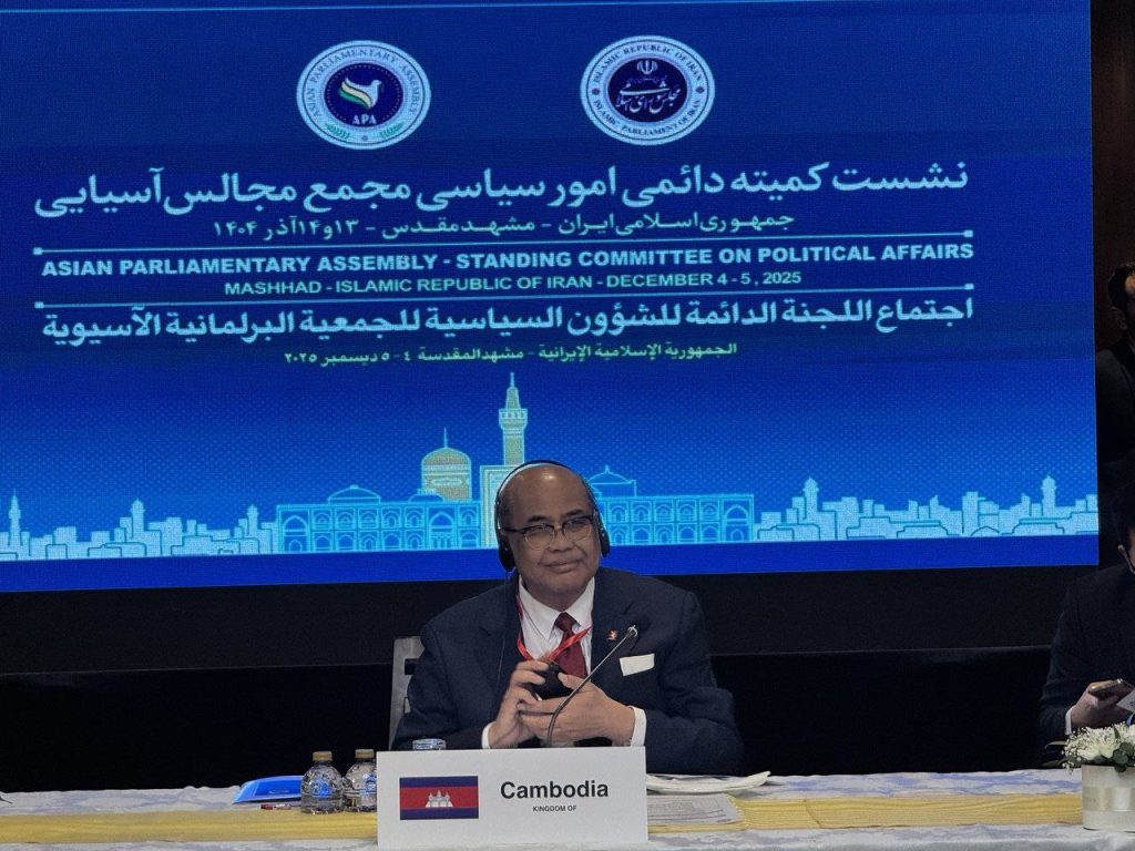 ឯកឧត្តម ងី ច័ន្ទ្រផល ប្រធានគណៈកម្មការទី១ព្រឹទ្ធសភា អមដំណេីរដោយលោក អ៊ុន សែនឫទ្ធិ ជំនួយការឯកឧត្តមអនុប្រធានទី១ព្រឹទ្ធសភា បានអញ្ជើញចូលរួមកិច្ចប្រជុំគណៈកម្មាធិការអចិន្ត្រៃយ៍នៃសភាតំបន់អាស៊ី (APA) ស្តីពីកិច្ចការនយោបាយ ដែលប្រព្រឹត្តទៅចាប់ពីថ្ងៃទី៤ ដល់ថ្ងៃទី៥ ខែធ្នូ ឆ្នាំ២០២៥ នៅទីក្រុងម៉ាសាដ ប្រទេសអ៉ីរ៉ង់ ដោយមានការចូលរួមពីប្រទេសជាសមាជិកចំនួន ១៦ប្រទេស ក្នុងនោះបណ្តាប្រទេសអាស៊ានមានតែកម្ពុជាទេ ដែលចូលរួម។ កិច្ចប្រជុំនេះដឹកនាំដោយម្ចាស់ផ្ទះ អ៉ីរ៉ង់ ជាប្រធាន និង តាជីគីស្ថាន ជាអនុប្រធាន ក្នុងនោះផងដែរ កម្ពុជា ដែលមានឯកឧត្តម ងី ច័ន្ទ្រផល ជាប្រធានគណ:ប្រតិភូ ត្រូវបានជ្រេីសតាំងជាអ្នករាយការណ៍(Rapporteur) ក្នុងកិច្ចប្រជុំនោះផងដែរ ។ក្នុងអំឡុងពេលនៃកិច្ចប្រជុំ ឯកឧត្តមក៏បានចូលរួមថ្លែងបទអន្តរាគមន៍ ក្នុងកិច្ចពិភាក្សាទូទៅទាក់ទងទៅនឹងសេចក្តីព្រាងសេចក្តីសម្រេចទាំង៩ ផងដែរ។
