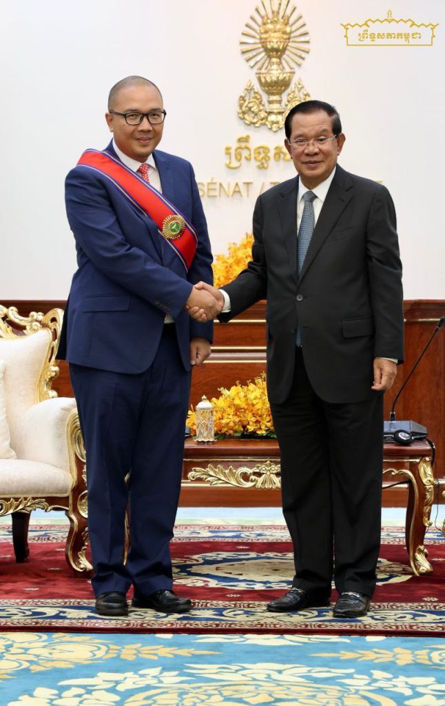 ក្នុងឱកាសនោះ សម្តេចតេជោ បានបំពាក់គ្រឿងឥស្សរិយយស «សហមេត្រី» ថ្នាក់ មហាសេរីវឌ្ឍន៍ ជូនឯកឧត្តមឯកអគ្គរដ្ឋទូតនៃសាធារណរដ្ឋឥណ្ឌូណេស៊ី ចំពោះការខិតខំរួមប្រឹងប្រែងរួមចំណែកជំរុញទំនាក់ទំនងទ្វេភាគីកម្ពុជា-ឥណ្ឌូណេស៊ី…។