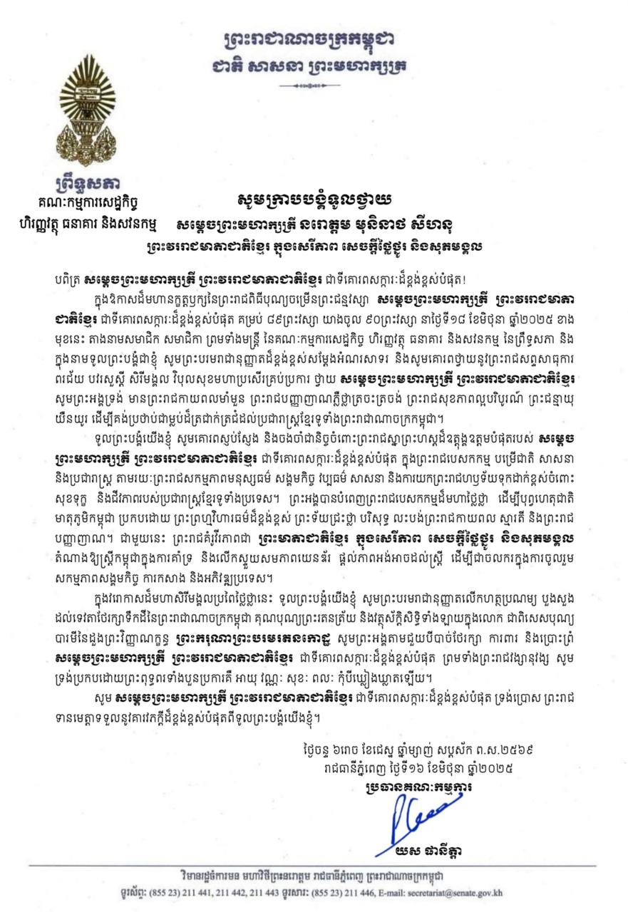 នាព្រឹកថ្ងៃទី១៣ ខែកុម្ភៈ ឆ្នាំ២០២៣ នៅសាលប្រជុំពិសេសវិមានព្រឹទ្ធសភា គណៈកម្មការសាធារណការ ដឹកជញ្ជូន អាកាសចរស៊ីវិល ប្រៃសណីយ៍ ទូរគមនាគមន៍ ឧស្សាហកម្ម រ៉ែ ថាមពល ពាណិជ្ជកម្ម រៀបចំដែនដី នគរូបនីយកម្ម និងសំណង់ នៃព្រឹទ្ធសភា (គណៈកម្មការទី៩) ដឹកនាំដោយឯកឧត្តម គង់ សារាជ ប្រធានគណៈកម្មការទី៩ព្រឹទ្ធសភា បានអញ្ជើញដឹកនាំកិច្ចប្រជុំគណៈកម្មការនានារបស់ព្រឹទ្ធសភា ជាមួយនឹងតំណាងរាជរដ្ឋាភិបាល ដឹកនាំដោយឯកឧត្តមសេដ្ឋាបណ្ឌិត ចម ប្រសិទ្ធ ទេសរដ្ឋមន្ត្រី រដ្ឋមន្ត្រីក្រសួងឧស្សាហកម្ម វិទ្យាសាស្ត្រ បច្ចេកវិទ្យា និងនវានុវត្ត ដើម្បីពិនិត្យសិក្សាលើសេចក្តីព្រាងស្តីពីការគ្រប់គ្រងទឹកស្អាត។ សេចក្តីព្រាងស្តីពីការគ្រប់គ្រងទឹកស្អាត រៀបចំឡើងដើម្បីបង្កើនប្រសិទ្ធភាពការគ្រប់គ្រងវិស័យទឹកស្អាត ធានាការពារផលប្រយោជន៍របស់ប្រជាពលរដ្ឋដែលជាអ្នកប្រើប្រាស់ ប្រតិបត្តិករដែលជាអ្នកប្រកបអាជីវកម្មផ្គត់ផ្គង់ទឹកស្អាត និងការពារផលប្រយោជន៍សាធារណៈ…៕
