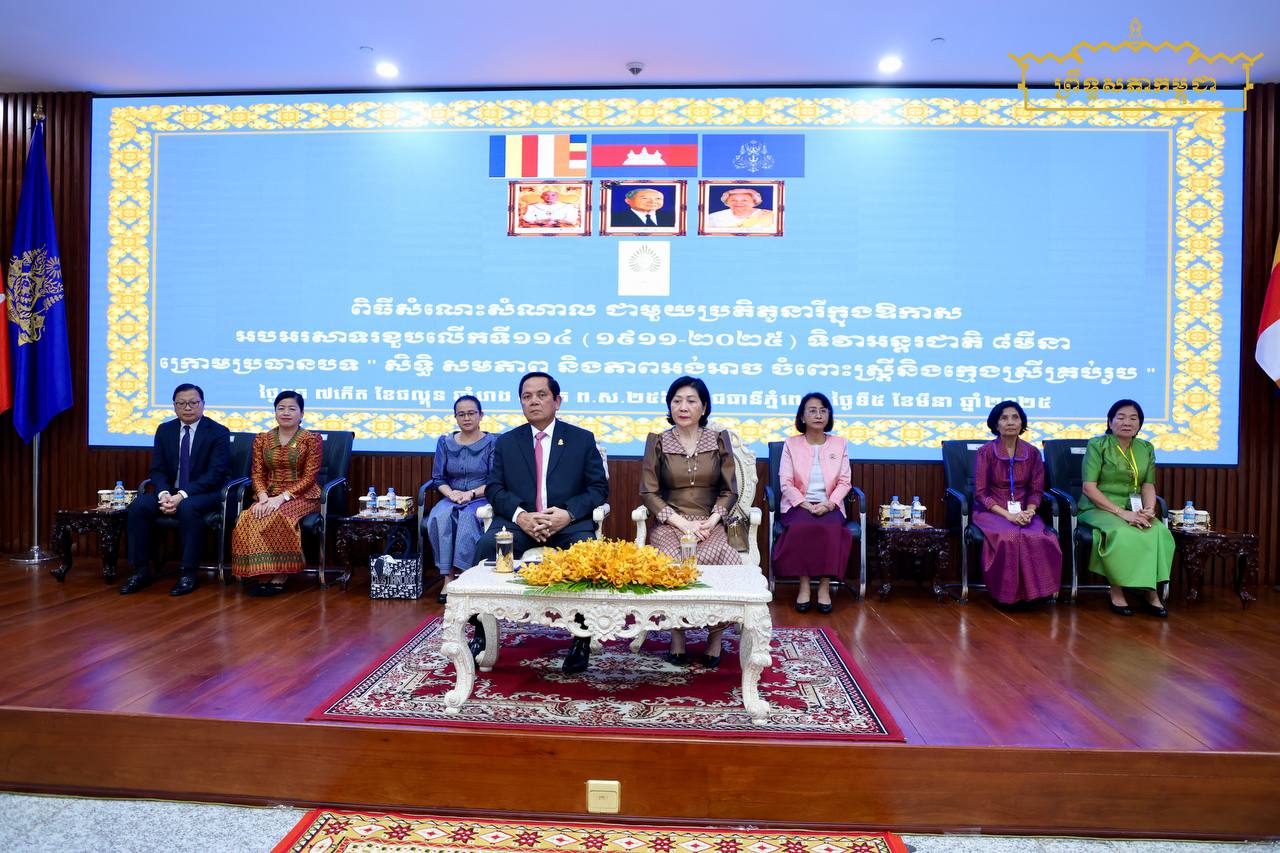 នារសៀលថ្ងៃពុធ ទី០៥ ខែមីនា ឆ្នាំ២០២៥ ឯកឧត្តម អ៊ុច បូររិទ្ធ ប្រធានស្តីទីព្រឹទ្ធសភា នៃព្រះរាជាណាចក្រកម្ពុជា បានអនុញ្ញាតឱ្យគណៈប្រតិភូនារី ដឹកនាំដោយលោកជំទាវកិត្តិបណ្ឌិត អ៊ឹង កន្ថាផាវី រដ្ឋមន្រ្តីក្រសួងកិច្ចការនារី ចូលជួបសំណេះសំណាល និងសម្តែងការគួរសម ក្នុងឱកាសអបអរសាទរខួបលើកទី១១៤ (១៩១១-២០២៥) ទិវាអន្តរជាតិនារី ៨មីនា ក្រោមប្រធានបទ «សិទ្ធិ សមភាព និងភាពអង់អាច ចំពោះស្រ្តីនិងក្មេងស្រីគ្រប់រូប» នៅវិមាន៧មករា រាជធានីភ្នំពេញ…។