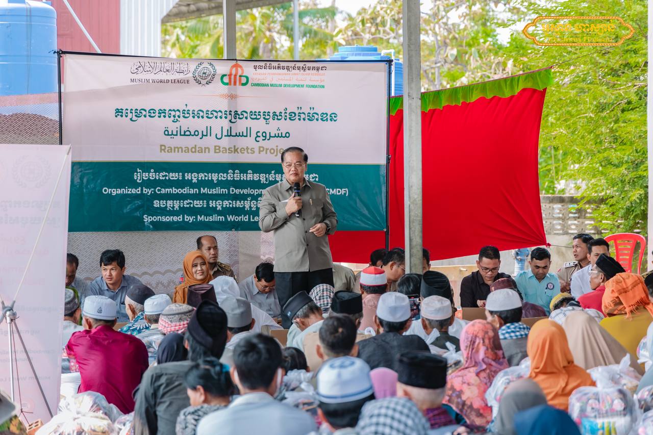 នៅព្រឹកថ្ងៃទី១៩ ខែមីនា ឆ្នាំ២០២៥ លោកជំទាវ ម៉ាណ ណាវី សមាជិកាក្រុមសមាជិកព្រឹទ្ធសភាប្រចាំភូមិភាគទី១ បានអញ្ជើញចូលរួមពិធីសំណេះសំណាល និងចែកកញ្ចប់អាហារស្រាយបួសខែរ៉ម៉ាឌន ជូនប្រជាពលរដ្ឋចំនួន ៤៥០ គ្រួសារ ក្រោមអធិបតីភាពដ៏ខ្ពង់ខ្ពស់ ឯកឧត្តមបណ្ឌិត អូស្មាន ហាស្សាន់ ទេសរដ្ឋមន្ត្រីទទួលបន្ទុកបេសកកម្មពិសេស និងជាប្រធានអង្គការមូលនិធិអភិវឌ្ឍន៍មុស្លិមកម្ពុជា(CMDF) នៅភូមិប្រវឹកពង ឃុំសែប ស្រុកកំពង់ត្រទ្បាច ខេត្តកំពង់ឆ្នាំង ដែលជាអំណោយរបស់អង្គការសម្ព័ន្ធពិភពឥស្លាម(MWL) ផ្តល់ជូនតាមរយៈអង្គការសម្ព័ន្ធពិភពឥស្លាម។
