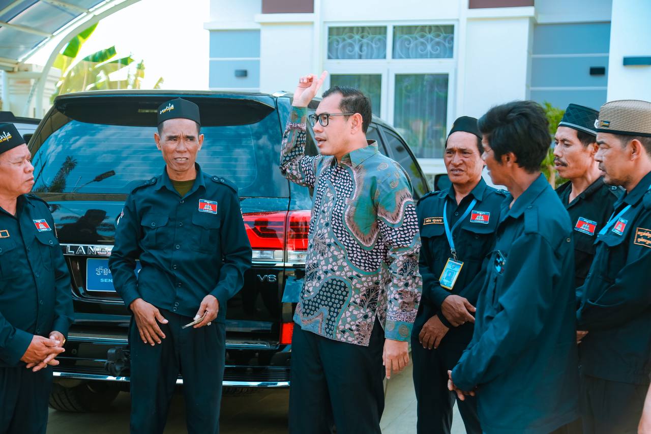 ឯកឧត្តម ស្លេះ ពុនយ៉ាមុីន សមាជិកក្រុម សមាជិកព្រឹទ្ធសភាប្រចាំភូមិភាគទី២ បានអញ្ជើញជួបសំណេះសំណាលជាមួយក្រុមប្រជាការពារ ភូមិរកាលើ និងរកាក្រោម សង្កាត់សំបួរមាស ក្រុងកំពង់ចាម ខេត្តកំពង់ចាម។