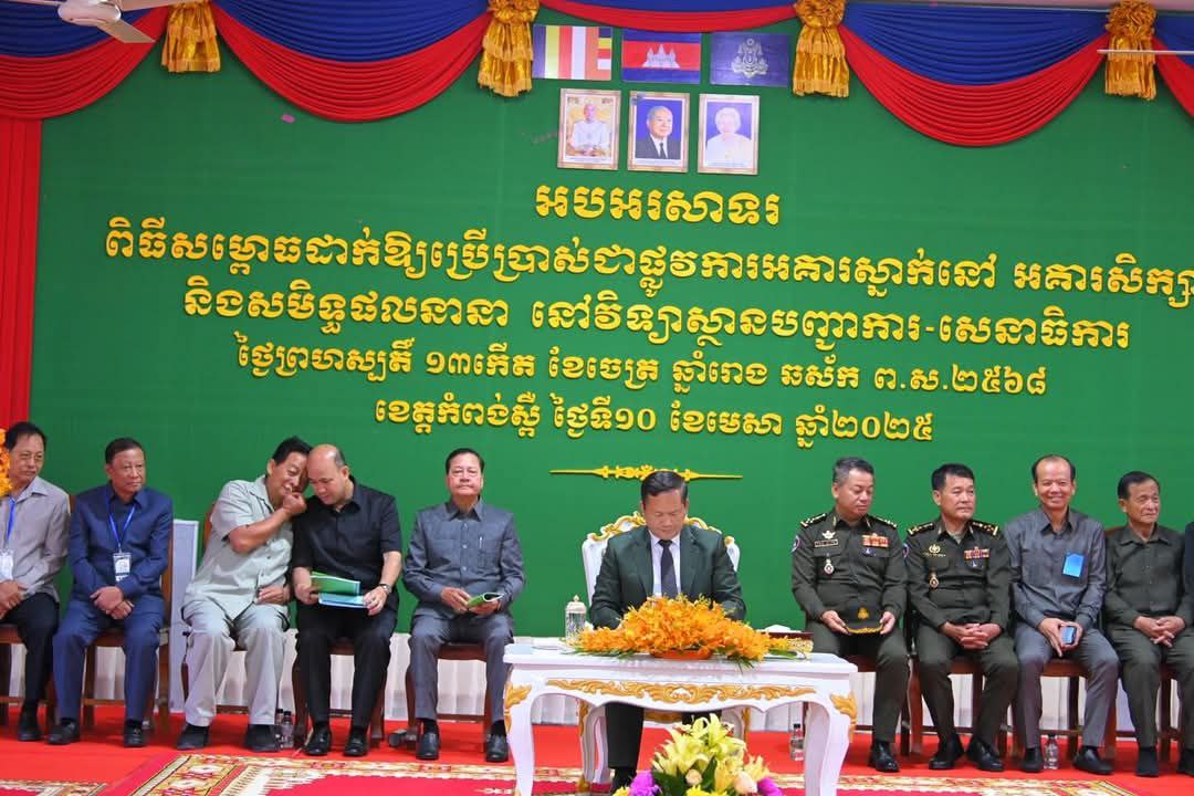 ថ្ងៃព្រហស្បតិ៍ ទី១០ ខែមេសា ឆ្នាំ២០២៥ វេលាម៉ោង ៧:៣០នាទី ក្រុមសមាជិកព្រឹទ្ធសភាប្រចាំភូមិភាគទី៧ បានអញ្ជើញចូលរួមជាកិត្តិយសក្នុងពិធីសម្ពោធដាក់ឱ្យប្រើប្រាស់ជាផ្លូវការអគារស្នាក់នៅ អគារសិក្សា និង សមិទ្ធផលនានា នៅវិទ្យាស្ថានបញ្ជាការសេនាធិការ ក្រោមអធិបតីភាពដ៏ខ្ពង់ខ្ពស់ សម្តេចមហាបវរធិបតី ហ៊ុន ម៉ាណែត នាយករដ្ឋមន្ត្រី នៃព្រះរាជាណាចក្រកម្ពុជា និងលោកជំទាវបណ្ឌិត នៅភូមិពោធិ៍ ឃុំដំណាក់រ៉ា ស្រុកសាមគ្គីមុនីជ័យ ខេត្តកំពង់ស្ពឺ។ ប្រភព៖ ការិយាល័យអមក្រុមសមាជិកប្រចាំភូមិភាគទី៧