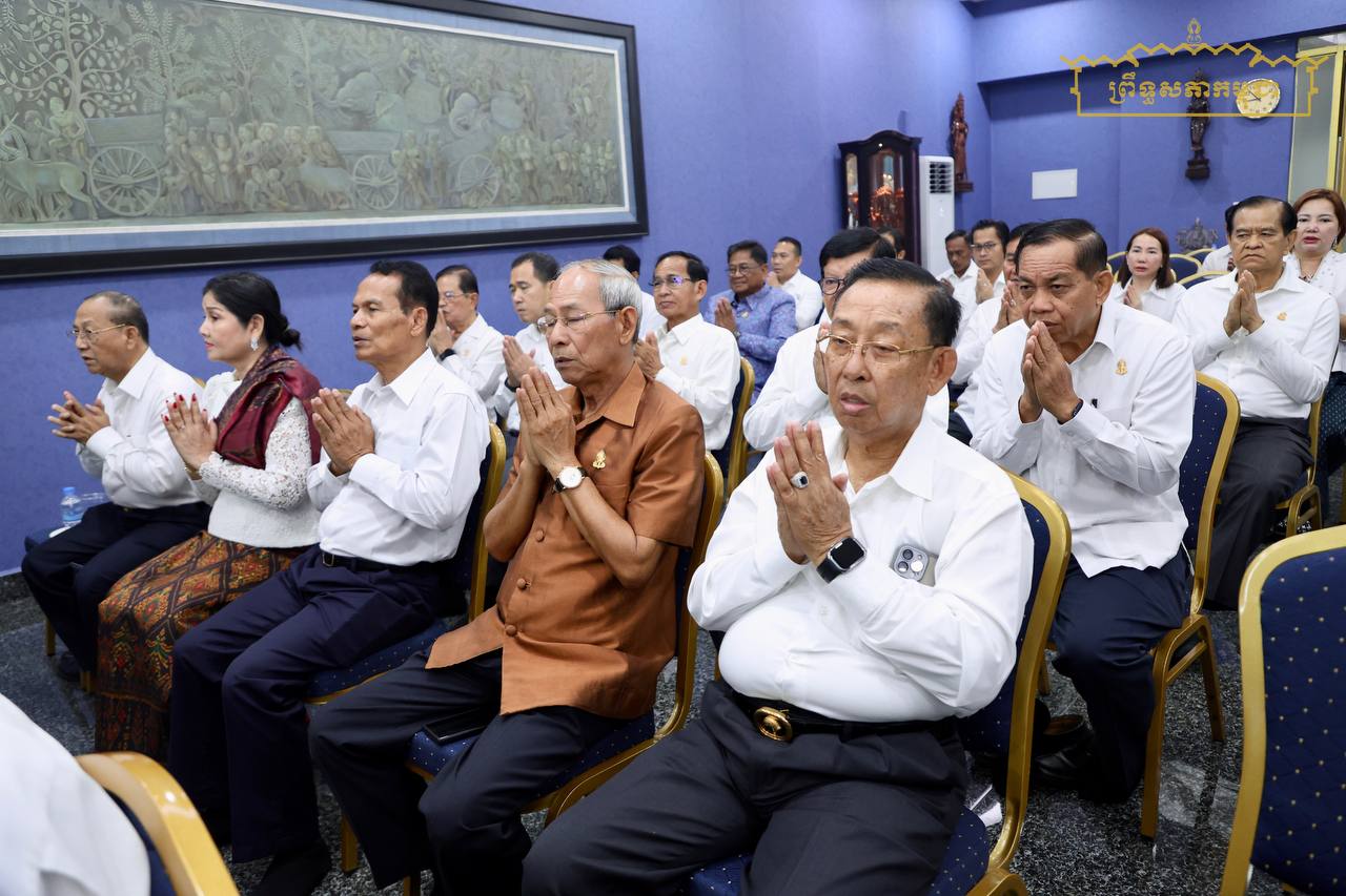 ព្រឹទ្ធសភានៃព្រះរាជាណាចក្រកម្ពុជា បានប្រារព្ធពិធីសូត្រមន្តចម្រើនព្រះបរិត្ត ប្រសិទ្ធិពរជ័យ សិរីមង្គល អបអរសាទរឆ្នាំថ្មីប្រពៃណីជាតិខ្មែរ ក្រោមអធិបតីភាពដ៏ខ្ពង់ខ្ពស់របស់ ឯកឧត្តម អ៊ុច បូររិទ្ធ អនុប្រធានទី១ព្រឹទ្ធសភា និងលោកជំទាវ ឯកឧត្តម បណ្ឌិត ធន់ វឌ្ឍនា អនុប្រធានទី២ព្រឹទ្ធសភា នាព្រឹកថ្ងៃសុក្រ ១៤កើត ខែចេត្រ ឆ្នាំរោង ឆស័ក ព.ស.២៥៦៨ ត្រូវនឹងថ្ងៃទី១១ ខែមេសា ឆ្នាំ២០២៥ ដោយមានការអញ្ជើញចូលរួមពីសមាជិក សមាជិកាព្រឹទ្ធសភា ទីប្រឹក្សា ជំនួយការថ្នាក់ដឹកនាំ និងថ្នាក់ដឹកនាំ ព្រមទាំងមន្ត្រីរាជការ នៃអគ្គលេខាធិការដ្ឋានព្រឹទ្ធសភាយ៉ាងច្រើនកុះករ។ ពិធីសូត្រមន្តចម្រើនព្រះបរិត្តរៀបចំឡើងដើម្បី អបអរសាទរពិធីបុណ្យចូលឆ្នាំថ្មីប្រពៃណីជាតិខ្មែរ បណ្តេញឧបទ្រពពីឆ្នាំចាស់ ប្រោសព្រំថ្វាយព្រះពរជ័យ លើករាសី សុំសេចក្តីសុខ សិរីសួស្តី និងទទួលអំណរឆ្នាំថ្មី ឆ្នាំម្សាញ់ សប្តស័ក ពុទ្ធសករាជ២៥៦៩។ ក្នុងពិធីសូត្រមន្តនេះ ឯកឧត្តម អ៊ុច បូររិទ្ធ និងលោកជំទាវ ឯកឧត្តមបណ្ឌិត ធន់ វឌ្ឍនា និងលោកជំទាវ បានអញ្ជើញថ្វាយនូវគ្រឿងសក្ការៈបូជា ទៀន ធូប ផ្កាភ្ញី និងប្រារព្ធកិច្ចនមស្សការព្រះរតនត្រ័យ សមាទានសីល និមន្តព្រះសង្ឃសូត្រព្រះធម៌ស្វាធ្យាយ ចម្រើនព្រះបរិត្ត និងពុទ្ធជ័យមង្គល ព្រមទាំងប្រគេនចង្ហាន់ ទេយ្យទាន និងគ្រឿងបរិក្ខារផ្សេងៗ វេប្រគេនព្រះសង្ឃ ដើម្បីឧទ្ទិមហាសកុសលផលបុណ្យជូនដល់ដួងវិញ្ញាណក្ខន្ធញាតិការទាំងប្រាំពីរសន្តាន ឥស្សរជន និងយុទ្ធជន ដែលបានពលីជីវិត ដើម្បីជាតិមាតុភូមិ ជាពិសេសដល់ដួងវិញាណក្ខន្ធរបស់សម្តេចអគ្គមហាធម្មពោធិសាល ជា ស៊ីម និងលោកជំទាវ ញ៉ែម សឿន ជាស៊ីម សម្តេចស៊ីសុវត្ថិ ជីវ័នមុនីរ័ក្ស និងឯកឧត្តម នៃ ប៉េណា ព្រមទាំងសមាជិក សមាជិកាព្រឹទ្ធសភា ដែលធ្លាប់បានបំពេញការងារជាសមាជិក សមាជិកាព្រឹទ្ធសភា ចាប់តាំងពីការកកើតព្រឹទ្ធសភាដំបូងរហូតមកដល់បច្ចុប្បន្ន និងដែលបានចែកឋានទៅកាន់លោកខាងមុខទាំងអស់ បានទៅសោយសុខក្នុងសុគតិភពកុំបីអាក់ខានឡើយ។ បន្ទាប់ពីពិធីសូត្រមន្តតាមទំនៀមទម្លាប់ប្រពៃណី ព្រះពុទ្ធសាសនាបានចប់សព្វគ្រប់រួចមក ថ្នាក់ដឹកនាំ សមាជិក សមាជិកាព្រឹទ្ធសភា ទីប្រឹក្សា ជំនួយការ និងថ្នាក់ដឹកនាំ ព្រមទាំងមន្ត្រីរាជការ នៃអគ្គលេខាធិការដ្ឋានព្រឹទ្ធសភា បានអញ្ជើញទស្សនាការសម្តែងរបាំត្រុដិយ៉ាងសប្បាយរីករាយ។ សង្រ្កាន្តឆ្នាំថ្មីប្រពៃណីជាតិខ្មែរ ឆ្នាំម្សាញ់ សប្តស័ក ពុទ្ធសករាជ ២៥៦៩ ទេវធីតាឆ្នាំថ្មីព្រះនាង «គោរាគៈទេវី» នឹងយាងចុះមកនាវេលាម៉ោង០៤:៤៨នាទីព្រឹក នៅថ្ងៃទី១៤ ខែមេសា ឆ្នាំ២០២៥ ខាងមុខនេះ៕