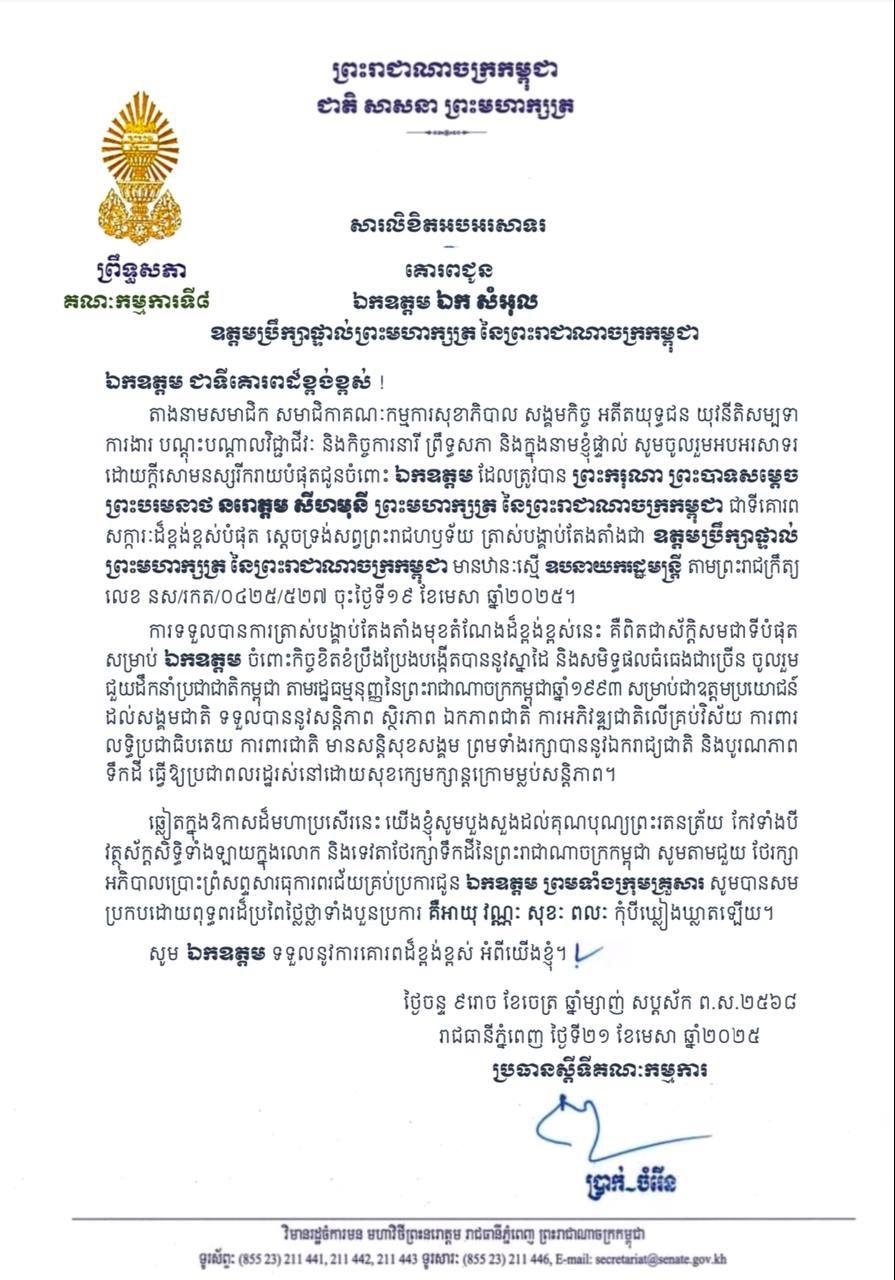 ថ្ងៃទី១២ ខែមេសា ឆ្នាំ២០២៥ ឯកឧត្តមបណ្ឌិត គឹម ធា លេខាធិការគណៈកម្មការទី៦ព្រឹទ្ធសភា និងជាសមាជិកក្រុមសមាជិកព្រឹទ្ធសភាប្រចាំភូមិភាគទី៦ និងឯកឧត្តម ឈួន ឡេង អនុប្រធានគណៈកម្មការទី២ព្រឹទ្ធសភា និងជាលេខាធិការក្រុមសមាជិកព្រឹទ្ធសភាប្រចាំភូមិភាគទី៦ បានអញ្ជើញចូលរួមពិធីបើកព្រឹត្តិការណ៍ “សង្ក្រាន្តព្រៃវែង ឆ្នាំ២០២៥” នៅក្នុងសង្កាត់កំពង់លាវ ក្រុងព្រៃវែង ខេត្តព្រៃវែង ក្រោមអធិបតីភាពដ៏ខ្ពង់ខ្ពស់ឯកឧត្តមអភិសន្តិបណ្ឌិត ស សុខា ឧបនាយករដ្ឋមន្ត្រី រដ្ឋមន្ត្រីក្រសួងមហាផ្ទៃ និងលោកជំទាវ កែ សួនសុភី ស សុខា។