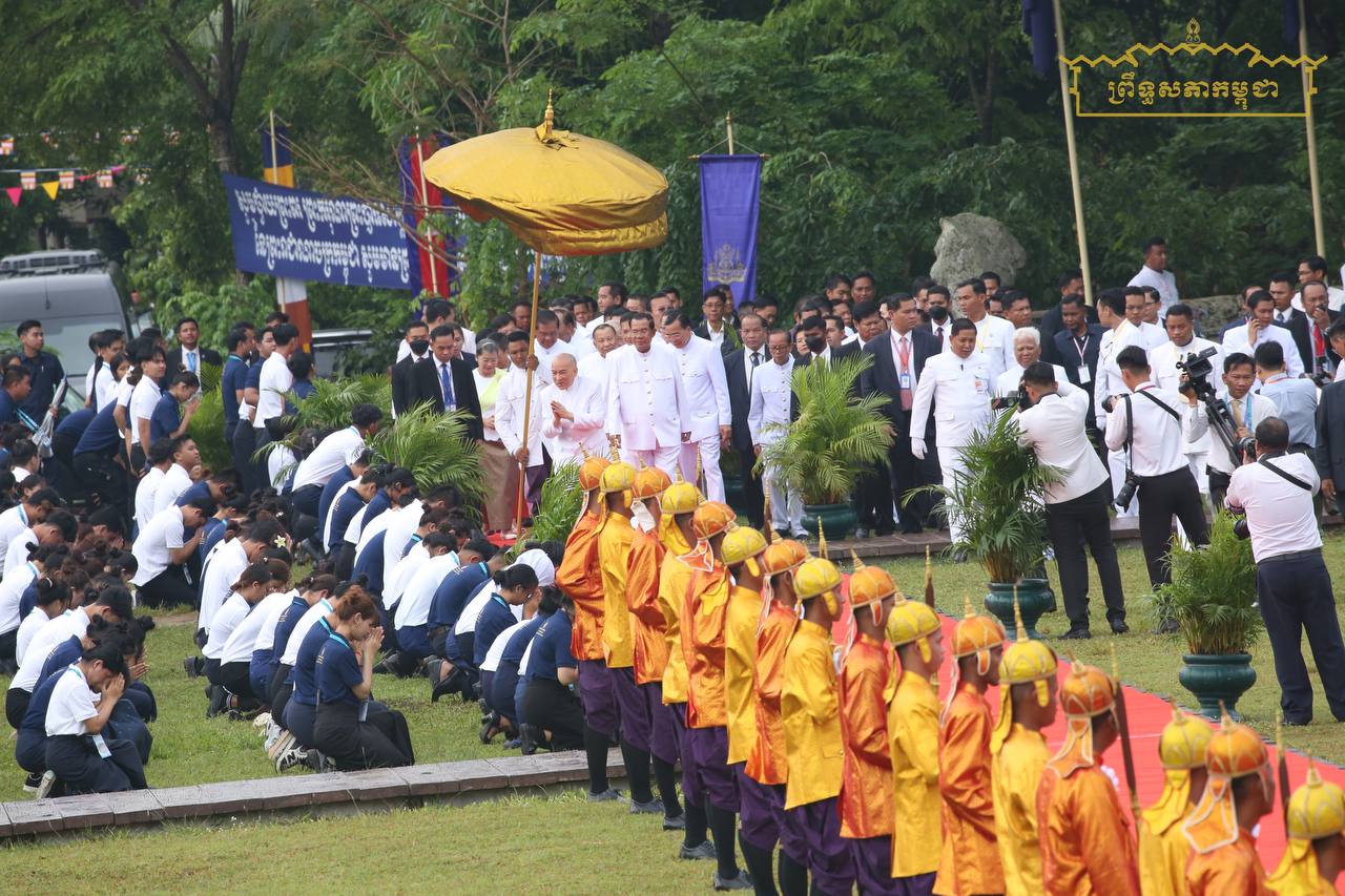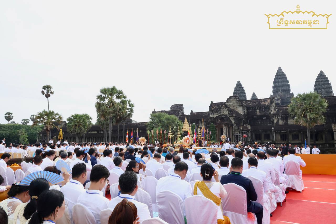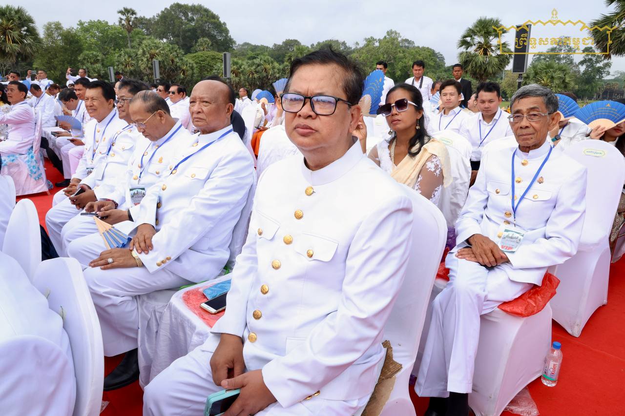 នាព្រឹកថ្ងៃចន្ទ ២រោច ខែចេត្រ ឆ្នាំម្សាញ់ សប្តស័ក ព.ស.២៥៦៨ ត្រូវនឹងថ្ងៃទី១៤ ខែមេសា ឆ្នាំ២០២៥ សម្តេចអគ្គមហាសេនាបតីតេជោ ហ៊ុន សែន ប្រធានព្រឹទ្ធសភា និងសមាជិក សមាជិកាព្រឹទ្ធសភា នៃព្រះរាជាណាចក្រកម្ពុជា ព្រមទាំងថ្នាក់ដឹកនាំនៃអគ្គលេខាធិការដ្ឋានព្រឹទ្ធសភា បានអញ្ជើញដង្ហែព្រះករុណាព្រះបាទសម្តេចព្រះបរមនាថ នរោត្តម សីហមុនី ព្រះមហាក្សត្រនៃព្រះរាជាណាចក្រកម្ពុជា ស្តេចយាងជាព្រះរាជាធិបតីភាពដ៏ខ្ពង់ខ្ពស់បំផុតក្នុងព្រះរាជពិធីបួងសួងចម្រើនសេចក្តីសុខ ជូនដល់ព្រះរាជាណាចក្រកម្ពុជា ក្នុងឱកាសអបអរសាទរសង្រ្កាន្តឆ្នាំថ្មីប្រពៃណីជាតិខ្មែរ ឆ្នាំម្សាញ់ សប្តស័ក ពុទ្ធសករាជ ២៥៦៩ នៅមុខប្រាសាទអង្គរវត្ត ខេត្តសៀមរាប…។