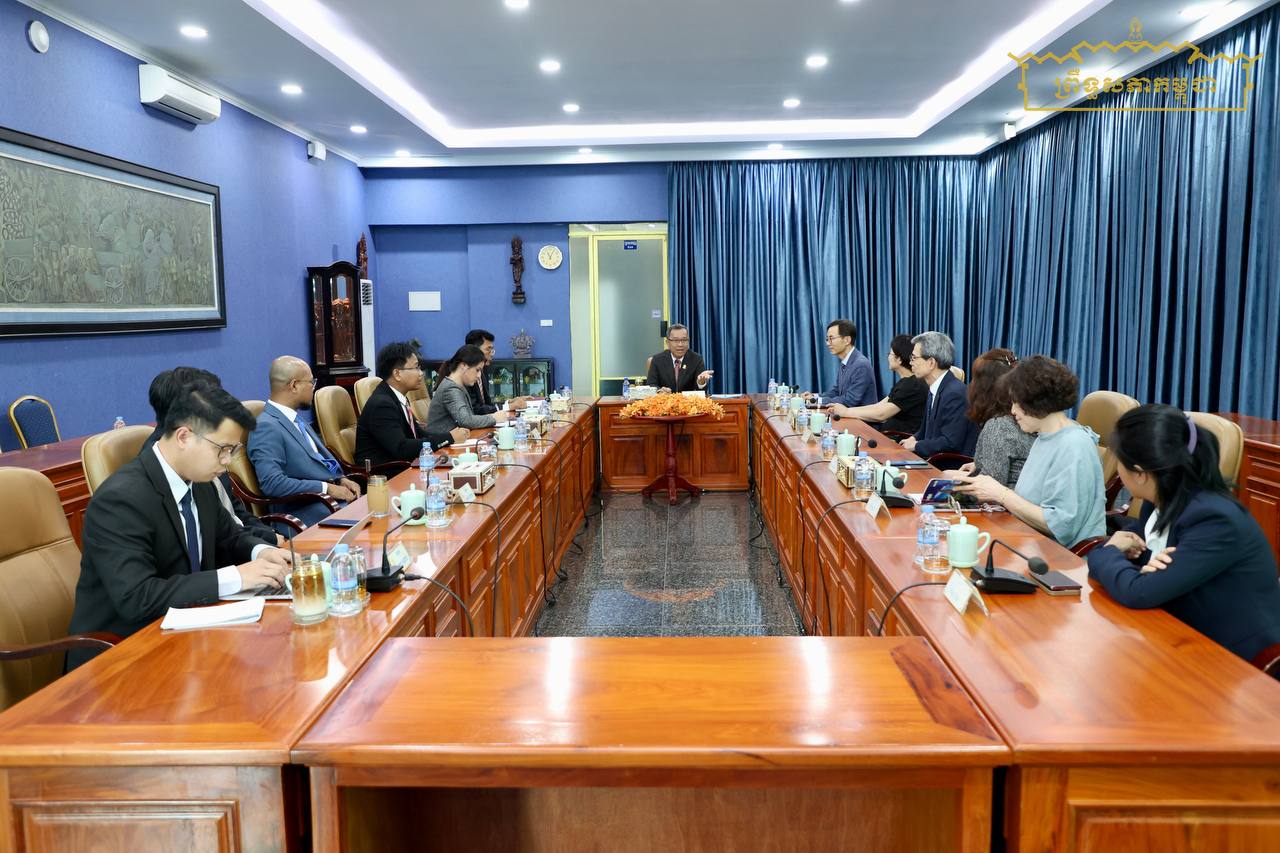 ជាកិច្ចចាប់ផ្តើម ឯកឧត្តមបណ្ឌិត អនុប្រធានទី២ព្រឹទ្ធសភា បានស្វាគមន៍យ៉ាងកក់ក្តៅជូនសាស្រ្តាចារ្យដែលបានមកទស្សនកិច្ចនៅព្រះរាជាណាចក្រកម្ពុជា និងមកកាន់ព្រឹទ្ធសភានាឱកាសនេះ។ ឯកឧត្តមបណ្ឌិត បានលើកអំពីទស្សនវិស័យ និងគំនិតផ្តួចផ្តើមថ្មីៗរបស់សាធារណរដ្ឋកូរ៉េ ដែលបានធ្វើឱ្យសេដ្ឋកិច្ចកូរ៉េមានការ ជឿនលឿនយ៉ាងឆាប់រហ័ស និងបានថ្លែងថា កម្ពុជា មានឆន្ទៈសិក្សាស្វែងយល់ពីបទពិសោធល្អៗរបស់កូរ៉េ។