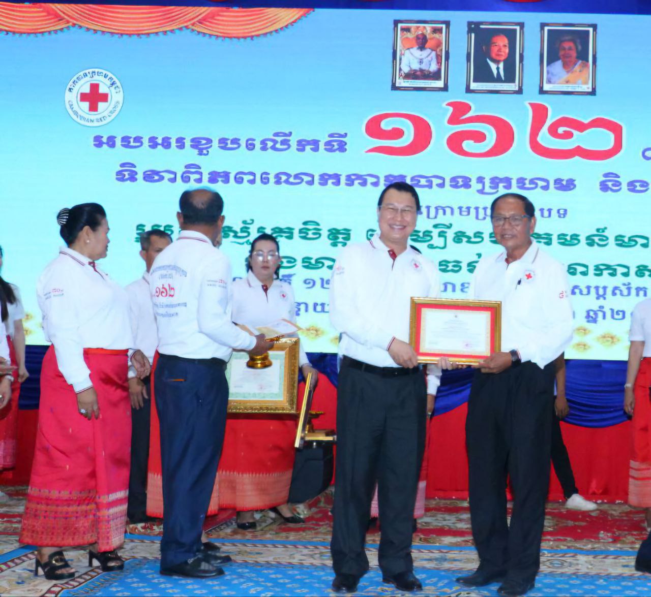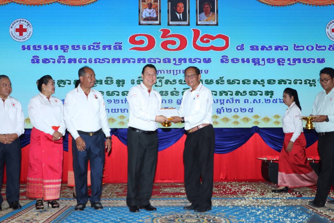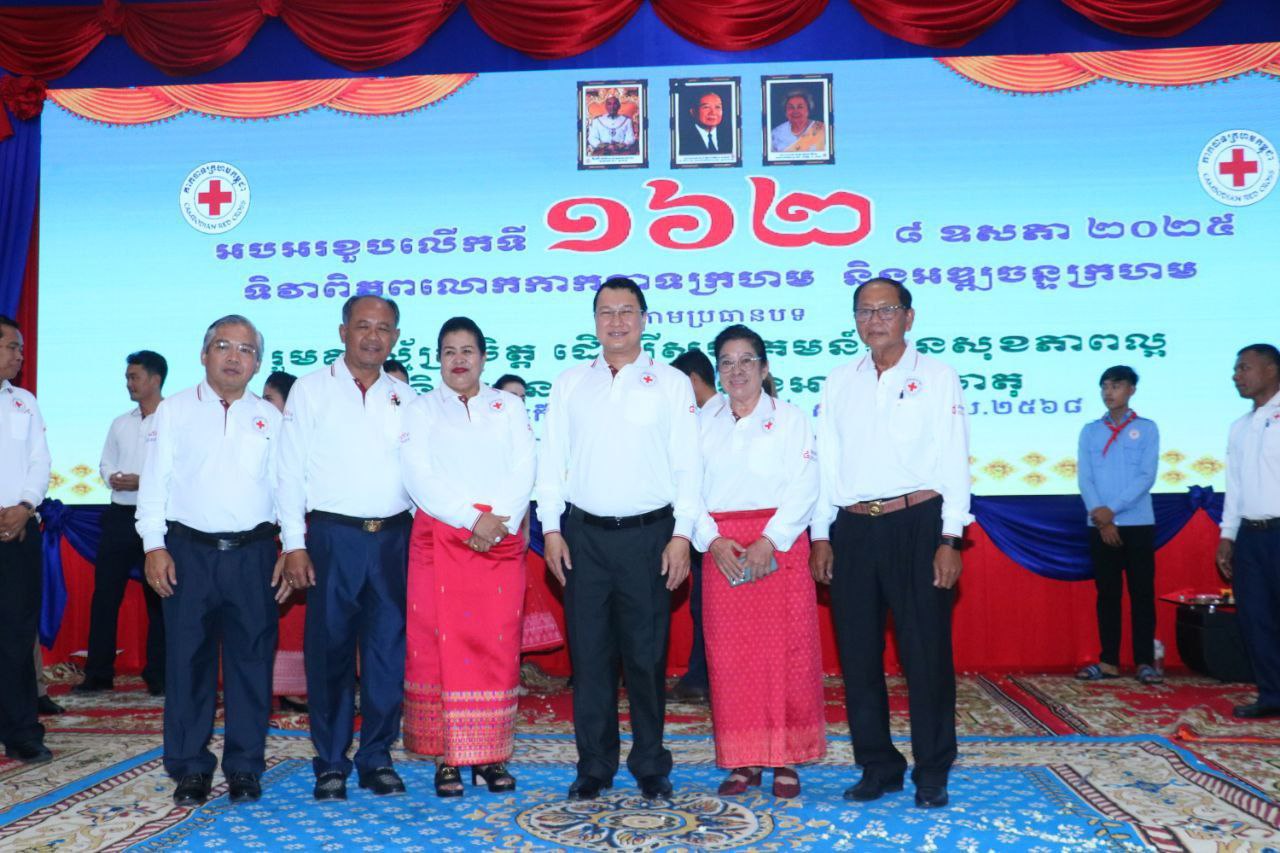 នាព្រឹកថ្ងៃព្រហស្បតិ៍ ទី៨ ខែឧសភា ឆ្នាំ២០២៥ ឯកឧត្ដម ឈើយ ចាន់ណា លេខាធិការគណៈកម្មការទី៧ ព្រឹទ្ធសភា និងជាលេខាធិការក្រុមសមាជិកព្រឹទ្ធសភា ប្រចាំភូមិភាគទី៤ និងឯកឧត្ដម អន ស៊ុំ សមាជិកក្រុមសមាជិកព្រឹទ្ធសភា ប្រចាំភូមិភាគទី៤ បានអញ្ជើញចូលរួមអបអរសាទរខួបលើកទី១៦២ ៨ ឧសភា ២០២៥ ទិវាពិភពលោកកាកបាទក្រហម និងអឌ្ឍចន្ទក្រហម ក្រោមប្រធាបបទ ” រួមគ្នាស្ម័គ្រចិត្ត ដើម្បីសហគមន៍មានសុខភាពល្អនិងមានភាពធន់នឹងអាកាសធាតុ ” ក្រោអធិបតីភាព ឯកឧត្ដម ឌិត ទីណា រដ្ឋមន្រ្តីក្រសួងកសិកម្ម រុក្ខាប្រមាញ់ និង នេសាទ ជាប្រធានក្រុមការងាររាជរដ្ឋាភិបាលចុះជួយមូលដ្ឋានខេត្តបន្ទាយមានជ័យ និងជាប្រធានកិត្តិយសខាសាកាកបាទក្រហមកម្ពុជាខេត្ត បន្ទាយមានជ័យ។ ក្នុងឱកាសនេះផងដែរមានការអញ្ជើញចូលរួមពី ឯកឧត្ដម លោកជំទាវ អ្នកតំណាងរាស្រ្តប្រចាំមណ្ឌលខេត្តបន្ទាយមានជ័យ ឧកញ៉ា ក្រុមការងារថ្នាក់ជាតិ ក្រុមប្រឹក្សាខេត្ត គណៈអភិបាលខេត្ត មន្រ្តីរាជការ កងកម្លាំងប្រដាប់អាវុធ ក្រុមហ៊ុននានា សប្បុរសជនយ៉ាងច្រើនកុះករ និងបានបរិច្ចាកចូលរួមថវិកា ប្រមូលសរុបចំនួន២១៦,៦៥៩ដុល្លារអាមេរិក។ ហើយនឹងមានការចូលរួមថវិកាបន្តបន្ទាប់តទៅទៀត។ កម្មវិធីនេះធ្វើឡើងនៅសាលប្រជុំធំសាលាខេត្តបន្ទាយមានជ័យ ដែលមានអ្នកចូលរួមសរុបចំនួន១.១៦២ អង្គ/នាក់។