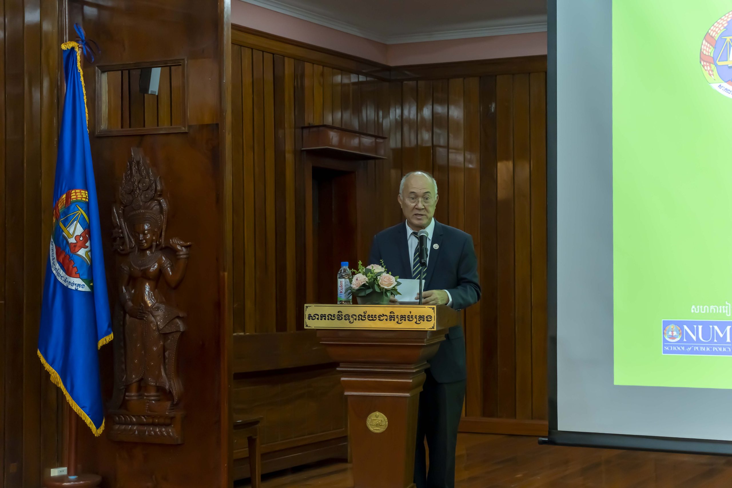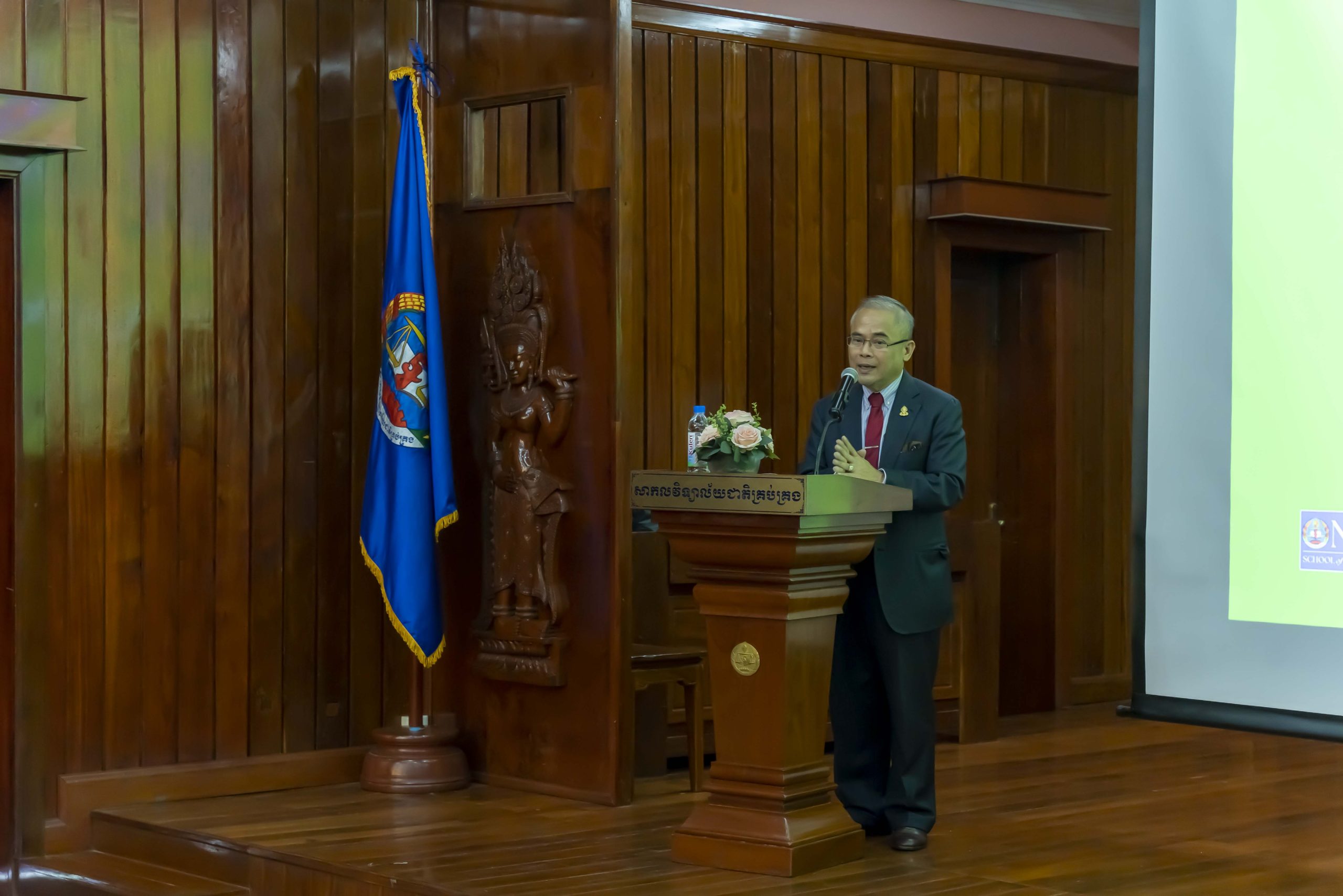 នាព្រឹកថ្ងៃពុធ ២ កើត ខែជេស្ឋ ឆ្នាំម្សាញ់ សប្តស័ក ពុទ្ធសករាជ ២៥៦៩ ត្រូវនឹងថ្ងៃទី២៨ ខែឧសភា ឆ្នាំ២០២៥ វេលាម៉ោង០៩៖០០ ឯកឧត្ដមបណ្ឌិត ចែម វីឌ្យ៉ា ប្រធានគណៈកម្មការកិច្ចការបរទេស សហប្រតិបត្តិការអន្ដរជាតិ និងព័ត៌មាន បានអញ្ជើញផ្ដល់បាឋកថា ស្ដីពី គោលនយោបាយការបរទេស និងវិស័យការទូត តបតាមសេចក្ដីអញ្ជើញរបស់ ឯកឧត្ដមសាស្ដ្រាចារ្យបណ្ឌិត ហោ ប៉េង សាកលវិទ្យាធិការ នៃសាកលវិទ្យាល័យជាតិគ្រប់គ្រង។