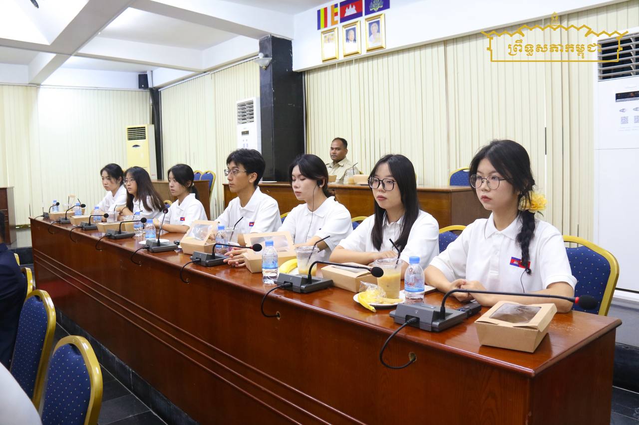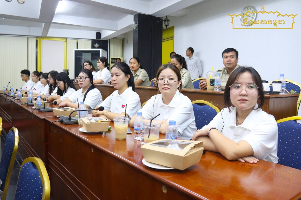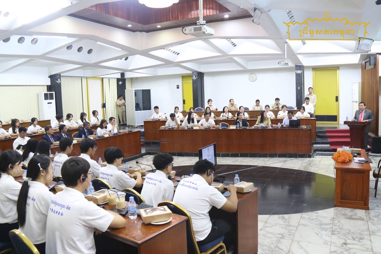 ឯកឧត្តម ម៉ម ប៊ុននាង ប្រធានគណៈកម្មការអង្កេត បោសសម្អាត និងប្រឆាំងអំពើពុករលួយ នៃព្រឹទ្ធសភា(គណៈកម្មការទី១០) តំណាងដ៏ខ្ពង់ខ្ពស់ឯកឧត្តម អ៊ុច បូររិទ្ធ អនុប្រធានទី១ព្រឹទ្ធសភា បានអញ្ជើញទទួលស្វាគមន៍ និងធ្វើបង្ហាញស្តីពី តួនាទី ភារកិច្ច និងសមត្ថកិច្ចរបស់ព្រឹទ្ធសភាកម្ពុជា ជូនលោកគ្រូ អ្នកគ្រូ និងនិស្សិតនៃសមាគមទំនាក់ទំនងយុវជនកម្ពុជា-ចិន ចំនួន៤៥នាក់ ក្នុងឱកាសអញ្ជើញមកទស្សនកិច្ចសិក្សាស្វែងយល់អំពី ព្រឹទ្ធសភាកម្ពុជា នៅវិមានព្រឹទ្ធសភា នាព្រឹកថ្ងៃសុក្រ ទី៣០ ខែឧសភា ឆ្នាំ២០២៥។