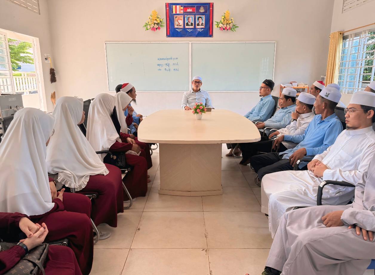 នារព្រឹកថ្ងៃទី០៥ ខែមិថុនា ឆ្នាំ២០២៥ ឯកឧត្តម ស្លេះ ពុនយ៉ាមុីន សមាជិកព្រឹទ្ធសភា ប្រចាំភូមិភាគ២ និងជាអនុប្រធាន សសយក ខេត្តកំពង់ចាម បានចុះសួរសុខទុក្ខនិងសំណេះសំណាលជាមួយលោកគ្រូ អ្នកគ្រូខ្មែរឥស្លាមនៃអនុវិទ្យាល័យ សម្តេចតេជោ ហ៊ុនសែន នៀកម៉ះ នៅភូមិរការក្រោម សង្កាត់សំបួរមាស ក្រុងកំពង់ចាម ខេត្តកំពង់ចាម។