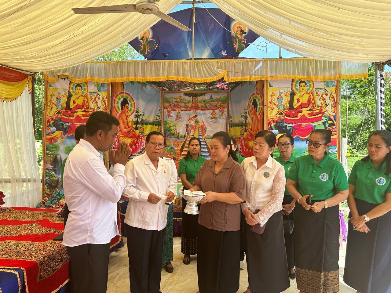 លោកជំទាវ មាន សំអាន ឯកឧត្តម ឈួន ឡេង និងលោកជំទាវ ឃួន ឃុនឌី អញ្ជើញចូលរួមពិធីបុណ្យគម្រប់ខួប៧ថ្ងៃ ភរិយាកងទ័ពបម្រើការងារនៅកងពលលេខ៩នៅខេត្តព្រះវិហារ ដែលមានទីលំនៅភូមិកន្សោមអក ឃុំកន្សោមអក ស្រុកកំពង់ត្របែក ខេត្តព្រៃវែង