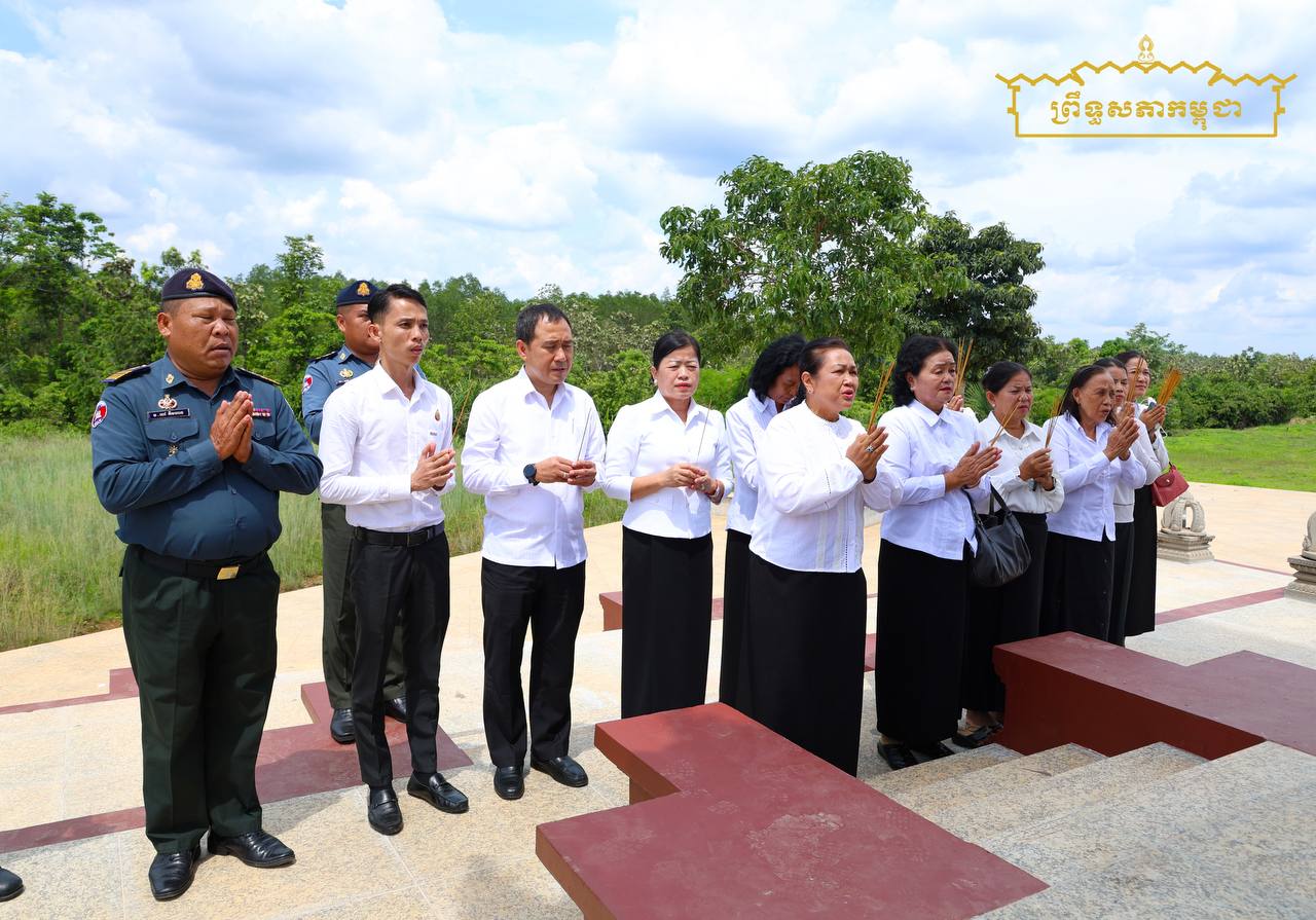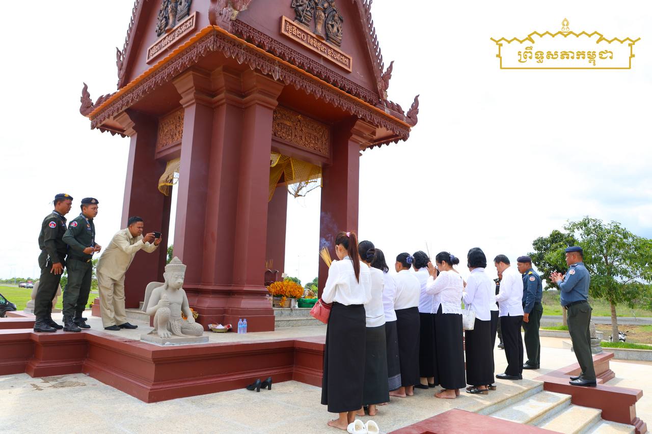 នាព្រឹកថ្ងៃអង្គារ ទី១៧ ខែមិថុនា ឆ្នាំ២០២៥ គណៈប្រតិភូព្រឹទ្ធសភា ដឹកនាំដោយលោកជំទាវ មាន សំអាន ប្រធានគណៈកម្មការទី៨ព្រឹទ្ធសភា បានអញ្ជើញដាក់កម្រងផ្កាគោរពវិញ្ញណក្ខន្ធវីរយុទ្ធជន វីរយុទ្ធនារី និងប្រជាជនកម្ពុជា ដែលបានពលីក្នុងរបបប្រល័យពូជសាសន៍ ប៉ុល ពត នៅមហាចេតិយតំបន់ប្រវត្តិសា្រស្តយោធាតេជោកោះថ្ម X16 ស្ថិតនៅឃុំទន្លូង ស្រុកមេមត់ ខេត្តត្បូងឃ្មុំ ក្នុងឱកាសរំលឹកខួបលើកទី៤៨ នៃទិវាចងចាំដំណើរឆ្ពោះទៅការផ្តួលរំលំរបបប្រល័យពូជសាសន៍ ប៉ុល ពត (២០ មិថុនា ១៩៧៧ -២០ មិថុនា ២០២៥)៕
