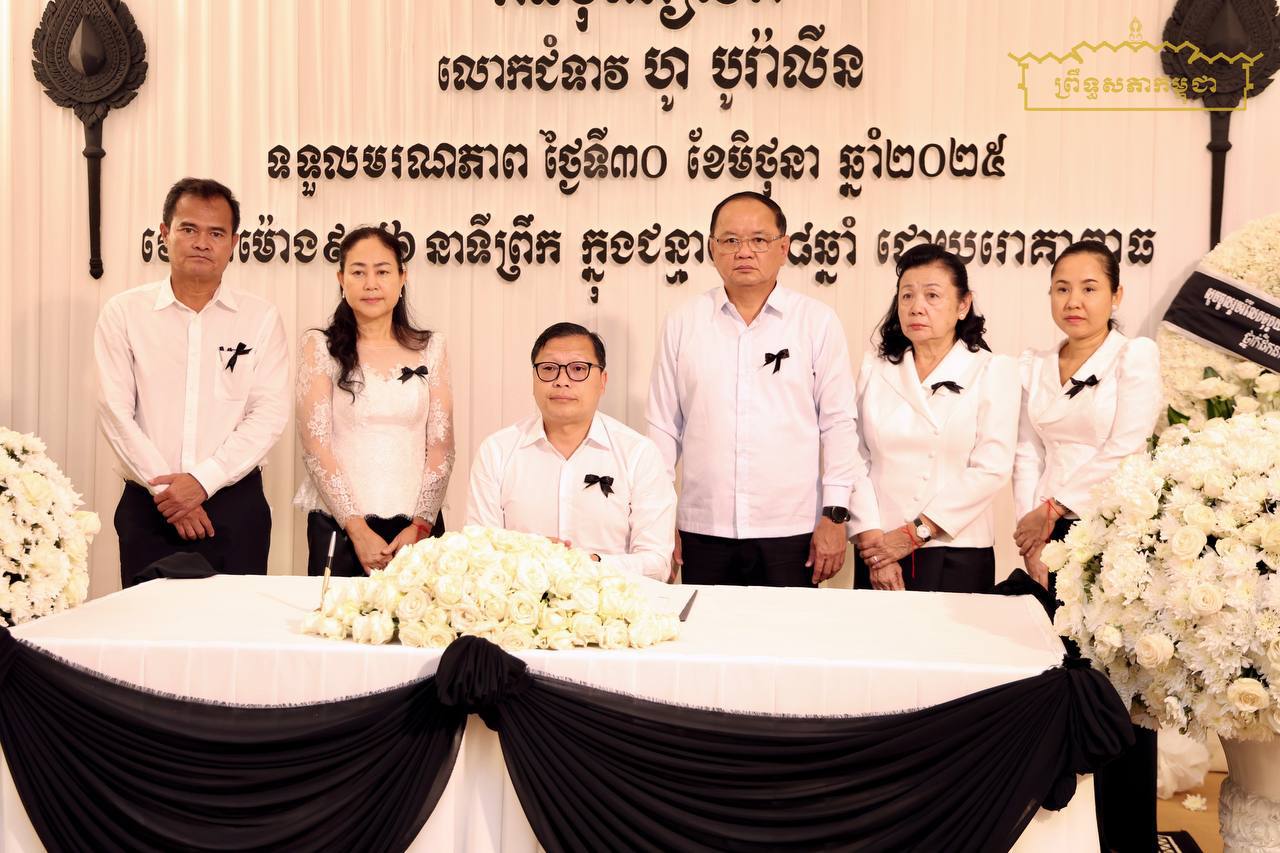 នាព្រឹកថ្ងៃសៅរ៍ ទី៥ ខែកក្កដា ឆ្នាំ២០២៥ ឯកឧត្តម ឡាយ សំកុល អគ្គលេខាធិការព្រឹទ្ធសភា និងលោកជំទាវ អមដោយឯកឧត្តម ខេង សិទ្ធិគុណ និងឯកឧត្តម អោក បូរ៉ា អគ្គលេខាធិការរងព្រឹទ្ធសភា បានអញ្ជើញគោរពវិញ្ញាណក្ខន្ធសព លោកជំទាវ ហូ បូរ៉ាលីន ភរិយារបស់ឯកឧត្តមសាស្ត្រាចារ្យ គង់ សន្យា អគ្គនាយកមន្ទីរពេទ្យកាល់ម៉ែត្រ ដែលបានទទួលមរណភាព កាលពីថ្ងៃចន្ទ ទី៣០ ខែមិថុនា ឆ្នាំ២០២៥ វេលាម៉ោង៩:៥៦ នាទីព្រឹក ក្នុងជន្មាយុ៥៨ឆ្នាំ ដោយរោគាពាធ។