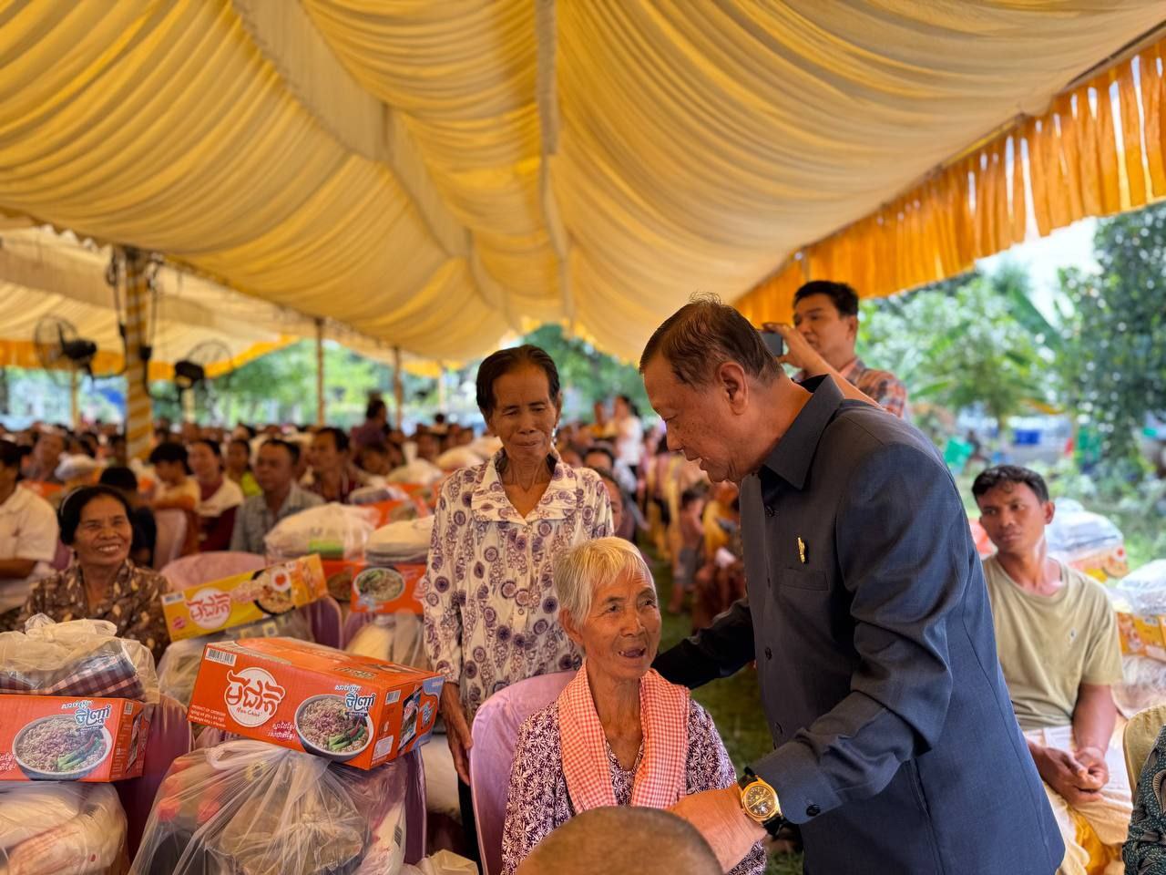 នាព្រឹកថ្ងៃអាទិត្យ ទី៦ ខែកក្កដា ឆ្នាំ២០២៥ ឯកឧត្តមបណ្ឌិត នាង ផាត ប្រធានគណៈកម្មការទី៤ព្រឹទ្ធសភា និងជាប្រធានក្រុមសមាជិកព្រឹទ្ធសភាប្រចាំភូមិភាគទី៨ បានអញ្ជើញចុះជួបសំណេះសំណាល និងសួរសុខទុក្ខប្រជាពលរដ្ឋដែលជួបការលំបាក ក្នុងភូមិ អណ្តូងធំ ឃុំគោកព្រេធ ស្រុកគីរីវង្ស ខេត្តតាកែវ ចំនួន២១០គ្រួសារ ព្រមទាំងបាននាំយកនូវអំណោយមួយចំនួនដូចជា អង្ករ ទឹកត្រី ត្រីខ ស្ករសរ ត្រីងៀត សាច់ក្រក មី អំបិល ក្រមា សារុង នំប៉ាវ ទឹកផ្លែឈើ និងថវិកាចំនួន២៥,០០០ រៀល ក្នុង១គ្រួសារ។