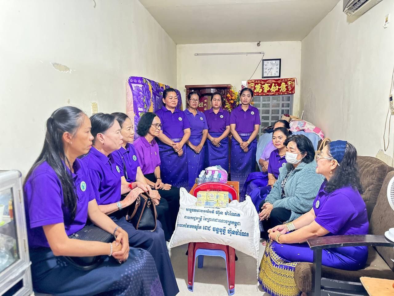 ក្នុងឱកាសនោះផងដែរ លោកជំទាវ និងអនុសាខាសមាគមនារីកម្ពុជា ដើម្បីសន្តិភាព និងអភិវឌ្ឍន៍ខណ្ឌចំការមន បានឧបត្ថម្ភអង្ករ ក្នុងម្នាក់ៗ២៥គីឡូក្រាម ទឹកដោះគោ១យួរ និងថវិកាមួយចំនួន។