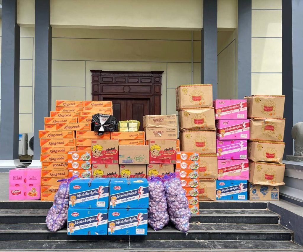 នាព្រឹកថ្ងៃអង្គារ ទី២៩ ខែកក្កដា ឆ្នាំ២០២៥ ឯកឧត្ដម ឈើយ ចាន់ណា លេខាធិការគណៈកម្មការទី៧ព្រឹទ្ធសភា និងជាលេខាធិការក្រុមសមាជិកព្រឹទ្ធសភាប្រចាំភូមិភាគទី៤ រួមជាមួយឯកឧត្ដមឧត្ដមសេនីយ៍ឯក ឡាយ គឹមលី នាយរងខុទ្ទកាល័យឯកឧត្ដមអភិសន្តិបណ្ឌិត ស សុខា ឧបនាយករដ្ឋមន្រ្តី រដ្ឋមន្ត្រីក្រសួងមហាផ្ទៃ ឯកឧត្ដម ឌូ ដាលីតូ អនុរដ្ឋលេខាធិការក្រសួងអភិវឌ្ឍន៍ជនបទ ឯកឧត្ដម ហ៊ូ ប៊ុនហេង សមាជិកក្រុមប្រឹក្សាខេត្ត បានអញ្ជើញចូលរួមទទួលគ្រឿងបរិភោគពីសប្បុរសជន ១-លោក សយ សុង និងភរិយា ២-លោក ចេន មឿ និងភរិយា ៣-លោក ម៉ាង ហេង និងភរិយា ៤-លោក ម៉ាង ហួរ និងភរិយា មានដូចជា ៖ ១-មី១០០កេស ២-កាហ្វេ២កេស ៣-ត្រីខ១០កេស ៤-ស្ករអ៊ិចអូ(XO) ១កេស ៥-បារី២០សុង ៦-ធូកមូស១កេស ៧-ដែកកេះ៤ប្រអប់ ៨-នំប្រៃ២កេស ៩-នំព្រិល១០កេស ១០-នំសានវ៉ិច១០កេស ១១-នំប៉័ងកៀប១០កេស ១២-ខ្ទឹមស៦០គក ១៣-សៀង១៦គក ជូនដល់កងកម្លាំងអគ្គបញ្ជាការកងរថក្រោះជួរមុខប្រចាំភូមិភាគទី៥ ។