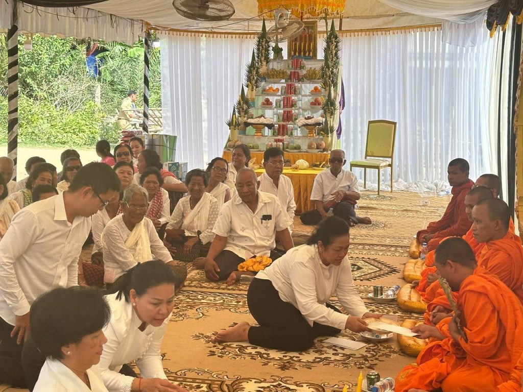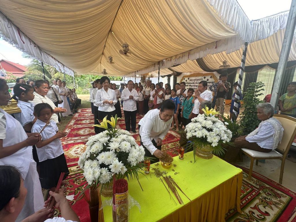 នារសៀលថ្ងៃទី៣១ ខែកក្កដា ឆ្នាំ២០២៥ ដឹកនាំដោយលោកជំទាវ មាន សំអាន ប្រធានក្រុមសមាជិកព្រឹទ្ធសភាប្រចាំភូមិភាគទី៦ ឯកឧត្តម ឈួន ឡេង លេខាធិការក្រុម ឯកឧត្តម ទឹម ផន សមាជិកក្រុម និងសម្តេចរាជបុត្រីព្រះអនុជ នរោត្តម អរុណរស្មី សមាជិកាក្រុមសមាជិកាព្រឹទ្ធសភា បានយាង និងអញ្ជើញគោរពវិញ្ញាណក្ខន្ធ សព លោក សំរិត ព្រី ដែលបានពលីជីវិតក្នុងបុព្វហេតុប្រយុទ្ធលើសមរភូមិជាមួយសៀមឈ្លានពាន ដើម្បីការពារបូរណភាពទឹកដី ដោយបានរៀបចំធ្វើបុណ្យនៅគេហដ្ឋានគ្រួសារសព ស្ថិតនៅភូមិកគោ ឃុំបន្ទាយចក្រី ខេត្តព្រៃវែង។នាឱកាសនោះ លោកជំទាវបាននាំយកសម្ភារមួយចំនួន និងបច្ច័យរបស់ក្រុមសមាជិកព្រឹទ្ធសភាប្រចាំភូមិភាគទី៦ ទៅចូលបុណ្យចំនួន១,៧០០,០០០ រៀល។