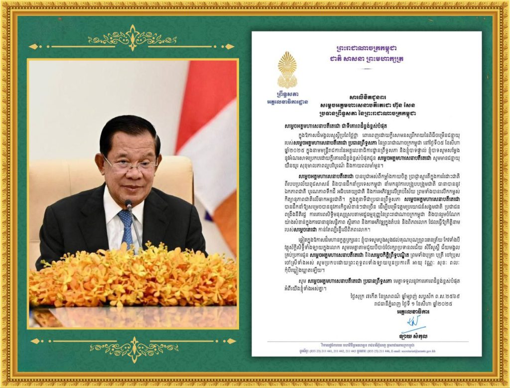 សារលិខិតជូនពររបស់ឯកឧត្តម ឡាយ សំកុល អគ្គលេខាធិការព្រឹទ្ធសភា គោរពជូន សម្តេចអគ្គមហាសេនាបតីតេជោ ហ៊ុន សែន ប្រធានព្រឹទ្ធសភា នៃព្រះរាជាណាចក្រកម្ពុជា ក្នុងឱកាសដ៏មង្គលសួស្តីប្រពៃថ្លៃថ្លា ពោរពេញដោយក្តីសោមនស្សរីករាយនៃពិធីចម្រើនជន្មាយុ របស់សម្តេចអគ្គមហាសេនាបតីតេជោ ប្រធានព្រឹទ្ធសភា នៃព្រះរាជាណាចក្រកម្ពុជា នៅថ្ងៃទី០៥ ខែសីហា ឆ្នាំ២០២៥