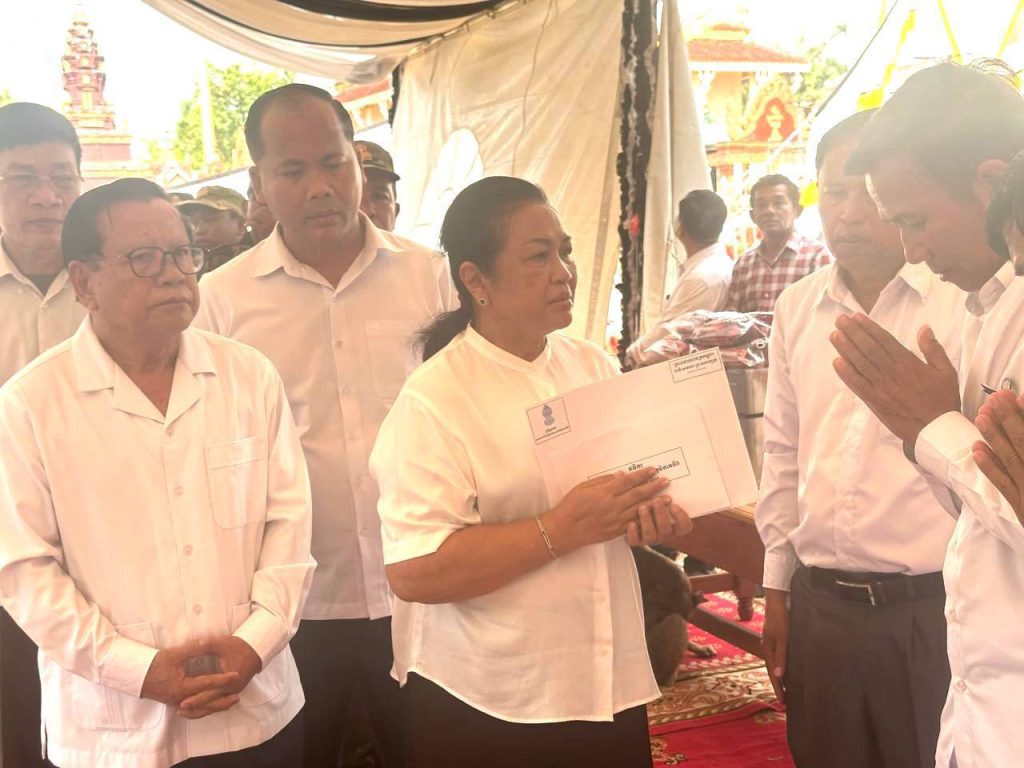 នារសៀលថ្ងៃទី៣ ខែសីហា ឆ្នាំ២០២៥ ដឹកនាំដោយលោកជំទាវ មាន សំអាន ប្រធានក្រុមសមាជិកព្រឹទ្ធសភាប្រចាំភូមិភាគទី៦ និងឯកឧត្តម ឈួន ឡេង លេខាធិការក្រុម បានអញ្ជើញគោរពវិញ្ញាណក្ខន្ធ និងដង្ហែសព រំកិលដាក់មេរុ លោកអនុសេនីយ៍ត្រី មឿន សាម៉េត ជាយោធិនកងពលធំអន្តរាគមន៍លេខ២ កងទ័ពជើងគោក ដែលបានពលីជីវិតក្នុងបុព្វហេតុប្រយុទ្ធលើសមរភូមិជាមួយសៀមឈ្លានពាន ដើម្បីការពារបូរណភាពទឹកដី ដោយបានរៀបចំធ្វើបុណ្យនៅវត្តកស្សប: ភូមិដងទង ឃុំប្រាសាទ ស្រុកកំពង់ត្របែក ខេត្តព្រៃវែង។
