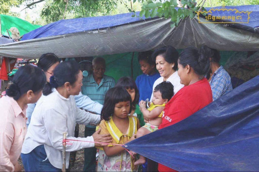 នាព្រឹកថ្ងៃអង្គារ ទី៥ ខែសីហា ឆ្នាំ២០២៥ គណៈប្រតិភូគណៈកម្មការសុខាភិបាល សង្គមកិច្ច អតីតយុទ្ធជន យុវនីតិសម្បទា ការងារ បណ្តុះបណ្តាលវិជ្ជាជីវៈ និងកិច្ចការនារី នៃព្រឹទ្ធសភា (គណៈកម្មការទី៨) ដឹកនាំដោយលោកជំទាវ មាន សំអាន ប្រធានគណៈកម្មការទី៨ព្រឹទ្ធសភា និងមានការយាងអញ្ជើញចូលរួមពី សម្ដេចរាជបុត្រីព្រះអនុជ នរោត្តម អរុណរស្មី ឧត្តមប្រឹក្សាផ្ទាល់ព្រះមហាក្សត្រ នៃព្រះរាជាណាចក្រកម្ពុជា និងជាសមាជិកាព្រឹទ្ធសភា អមដំណើរដោយឯកឧត្តម លៀម សុដា អភិបាលរង នៃគណៈអភិបាលខេត្តបន្ទាយមានជ័យ បានចុះជួបសំណេះសំណាលជាមួយជាមួយប្រជាពលរដ្ឋភៀសខ្លួនស្នាក់នៅបណ្តោះអាសន្ននៅកន្លែងមានសុវត្ថិភាព ជំរុំវត្តច័ន្ទស៊ីសាមគ្គីរតនារាម ស្ថិតក្នុងឃុំកូប ស្រុកអូរជ្រៅ ខេត្តបន្ទាយមានជ័យ។