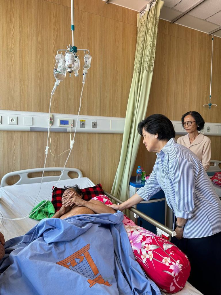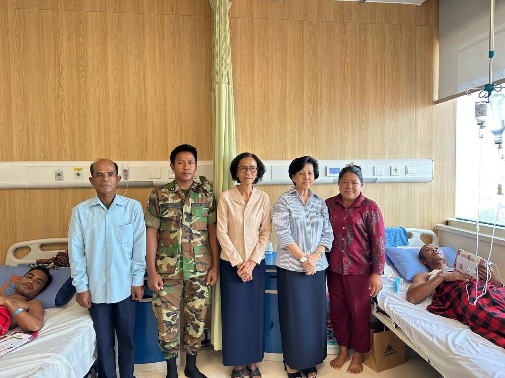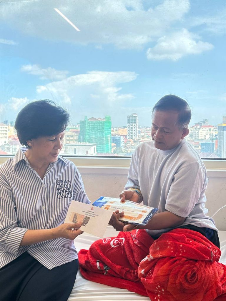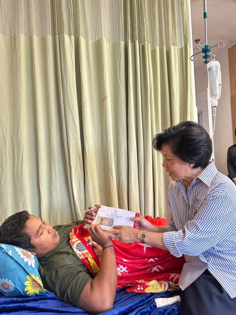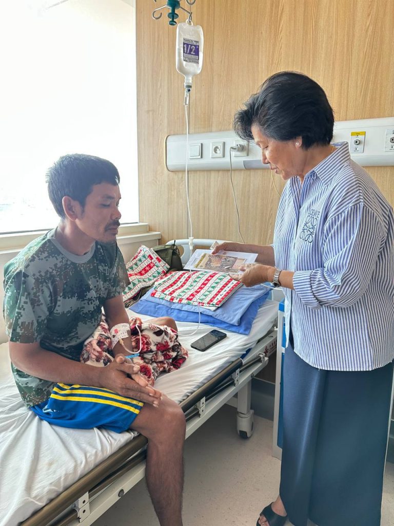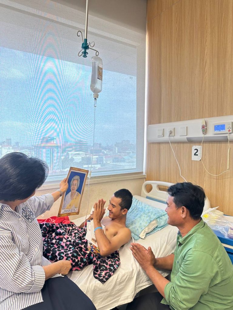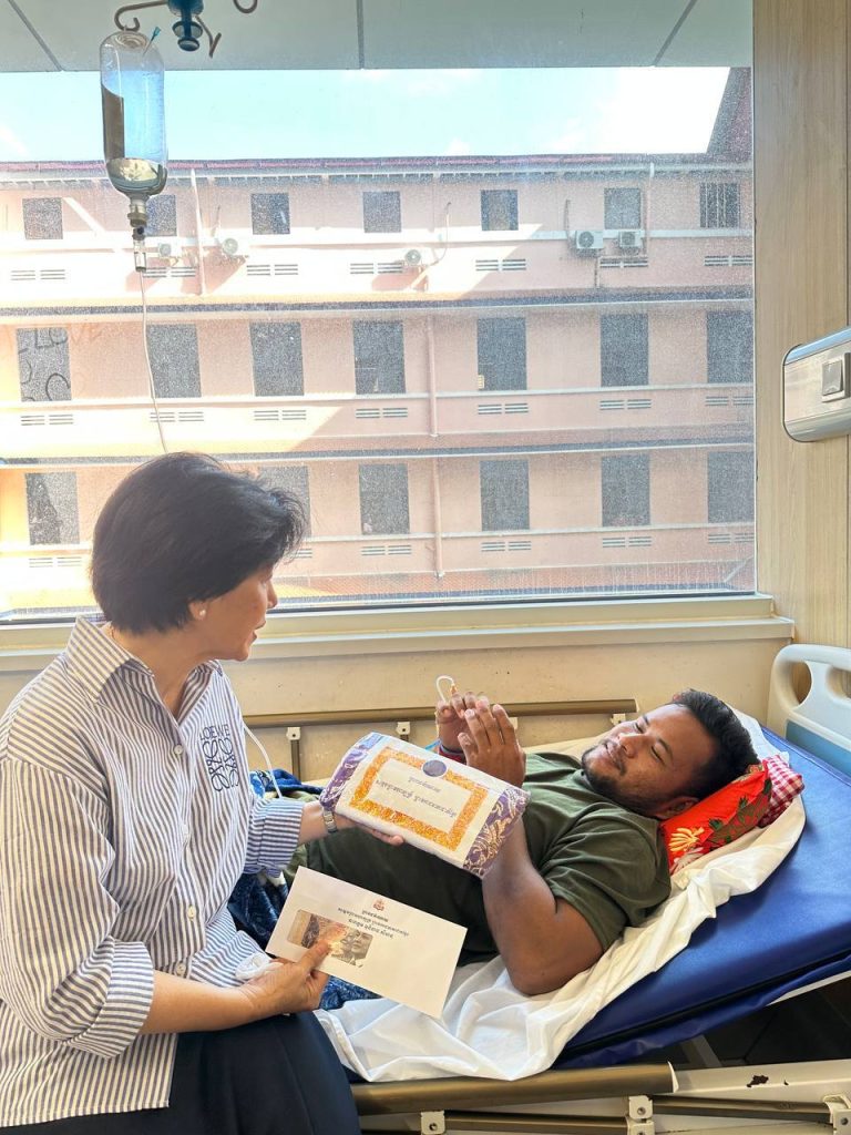 ក្រោមព្រះរាជហឫទ័យទុកដាក់ខ្ពស់ជាប់ជានិច្ចចំពោះសុខទុក្ខរបស់កូនចៅ ចៅទួតរបស់ព្រះអង្គជាយុទ្ធជនកងទ័ពដ៏អង់អាចក្លាហានរបស់ព្រះរាជាណាចក្រកម្ពុជាយេីង និងប្រជានុរាស្ត្រភៀសសឹកដែលកំពុងសម្រាកព្យាបាលនៅមន្ទីរពេទ្យមិត្តភាពកម្ពុជា-ចិនព្រះកុសុមៈ សម្តេចព្រះមហាក្សត្រី នរោត្តម មុនិនាថ សីហនុ ព្រះវររាជមាតាជាតិខ្មែរ ជាទីគោរពសក្ការៈដ៏ខ្ពង់ខ្ពស់បំផុត ព្រះអង្គសព្វព្រះរាជហឫទ័យប្រោសព្រះរាជទាន សម្តេចរាជបុត្រី ព្រះអនុជ នរោត្តម អរុណរស្មី ឧត្តមប្រឹក្សាផ្ទាល់ព្រះមហាក្សត្រ និងជាសមាជិកាព្រឹទ្ធសភា នាំយកនូវព្រះរាជបណ្តាំផ្ញេីសួរសុខទុក្ខ ព្រមទាំងពរជ័យ និងព្រះរាជទ្រព្យ ជាថវិកានិងសារុង ជូនវីរកងទ័ព និងជនភៀសសឹកសរុបចំនួន១៤រូប និងបន្តទៅមន្ទីរពេទ្យព្រះកេតុមាលា មាន ១៧ នាក់ និងមន្ទីរពេទ្យមិត្តភាពខ្មែរសូវៀត មាន ២០នាក់ នាថ្ងៃទី៧ ខែសីហា ឆ្នាំ២០២៥។