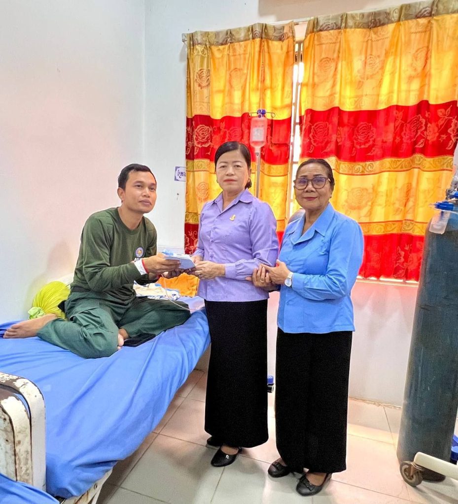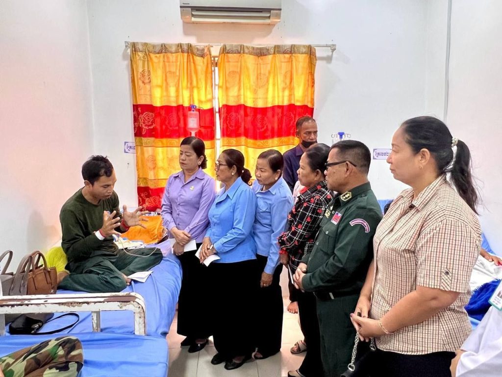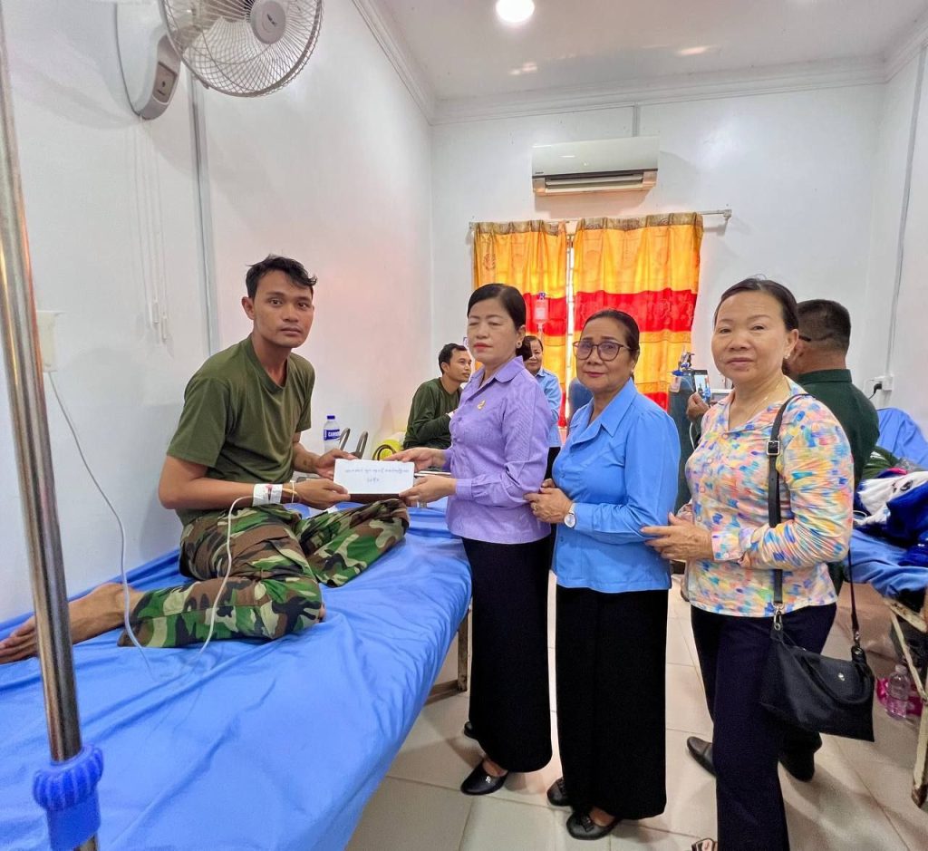នាព្រឹកថ្ងៃទី៨ ខែសីហា ឆ្នាំ២០២៥ លោកជំទាវ ឃួន ឃុនឌី លេខាធិការគណៈកម្មការទី៨ព្រឹទ្ធសភា អនុប្រធានក្រុមសមាជិកព្រឹទ្ធសភាប្រចាំភូមិភាគទី៨ បានអញ្ជើញចុះសួរសុខទុក្ខវរ:កងទ័ពចំនួន៣នាក់ ដែលបានរងរបួសកំពុងសម្រាកព្យាបាលនៅមន្ទីរពេទ្យបង្អែកខេត្តកំពង់ធំ ខេត្តកំពង់ធំ មានដូចខាងក្រោម៖
