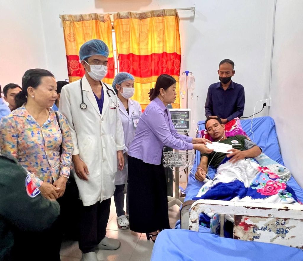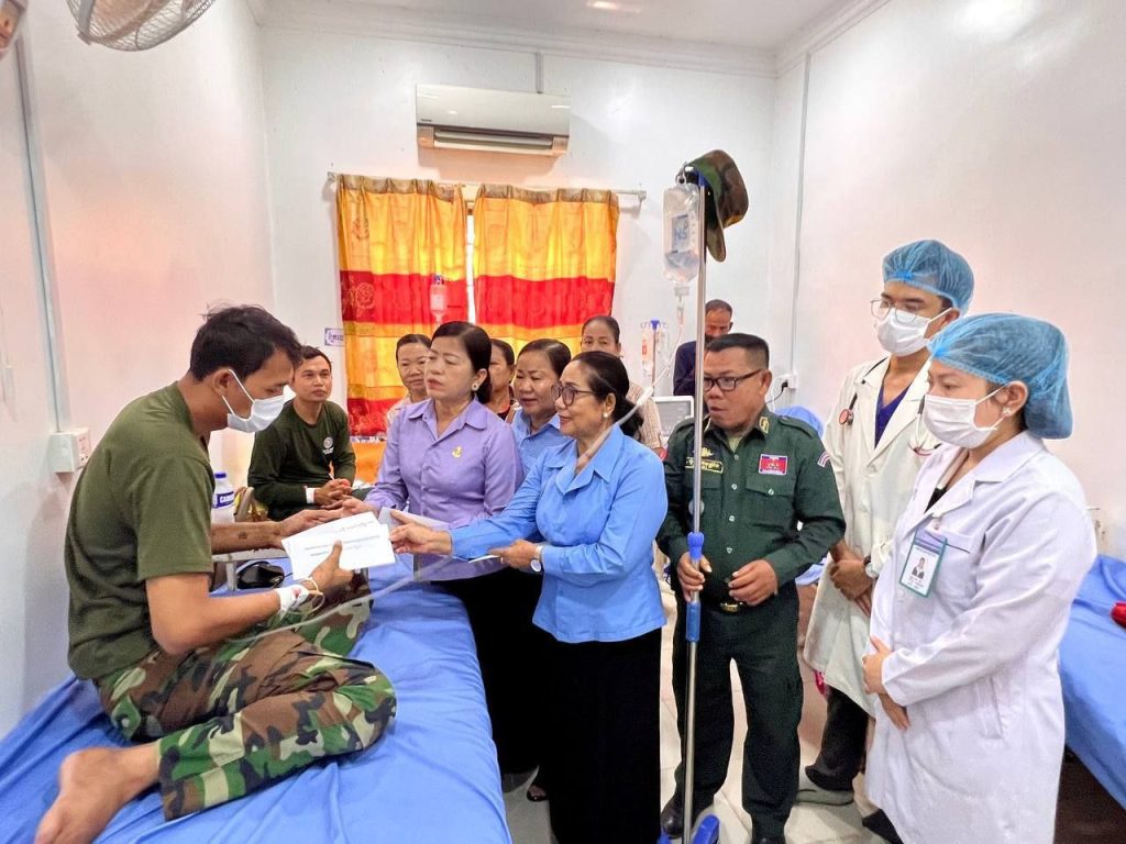 • លោកជំទាវ ឃួន ឃុនឌី អញ្ជើញចុះសួរសុខទុក្ខវរ:កងទ័ពរងរបួសកំពុងសម្រាកព្យាបាលនៅមន្ទីពេទ្យបង្អែក ខេត្តកំពង់់ធំ