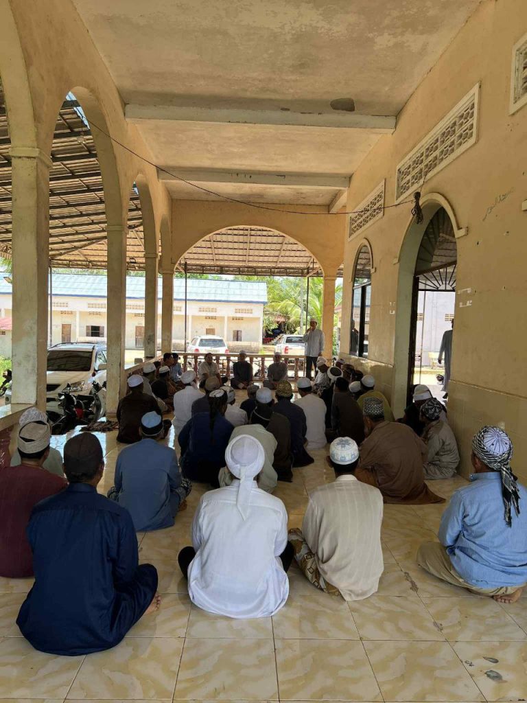 នារសៀលថ្ងៃទី១១ ខែសីហា ឆ្នាំ២០២៥ ឯកឧត្តម លី សារី សមាជិកគណៈកម្មការទី១ព្រឹទ្ធសភានិងជាសមាជិកក្រុមសមាជិកព្រឹទ្ធសភាប្រចាំភូមិភាគទី៥ បានអញ្ជើញចុះជួបសំណេះសំណាលជាមួយថ្នាក់ដឹកនាំស្រុក និងប្រជាពលរដ្ឋខ្មែរអ៉ិស្លាម នៅភូមិកំពង់សំរោង ឃុំកំពង់សំរោង ស្រុកទឹកឈូ ខេត្តកំពត ក្នុងពិធីទទួលថវិកាសម្រាប់ផ្តល់ជូនវីរកងទ័ព និងជនភៀសសឹកតាមរយៈក្រុមការងារស្រុកទឹកឈូ ខេត្តកំពត ដោយមានការចូលរួមពីសំណាក់ថ្នាក់ដឹកនាំស្រុក អាជ្ញាធរមូលដ្ឋាន ព្រមទាំងប្រជាពលរដ្ឋយ៉ាងច្រើនផងដែរ។