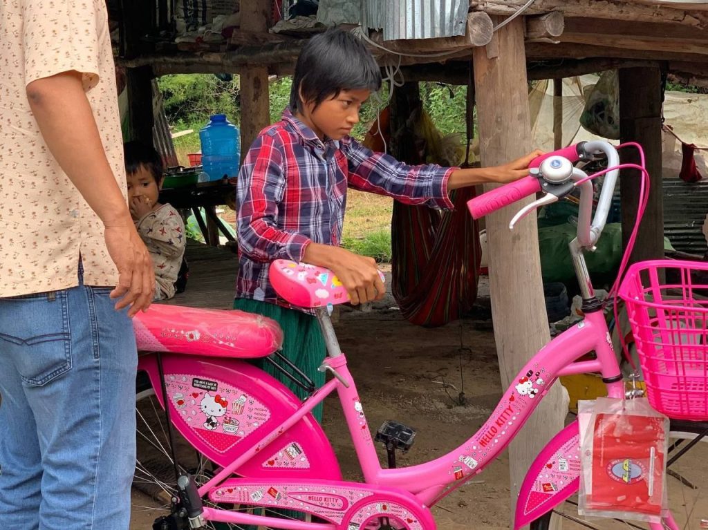 លោកជំទាវ ម៉ាណ ណាវី នាំយកសម្ភារៈសិក្សា កង់ ថវិកា គ្រឿងបរិភោគ និងរបស់ប្រើប្រាស់ជូនដល់ក្មួយស្រី វីរៈ ស្រីណា ដែលមានជីវភាពខ្វះខាត