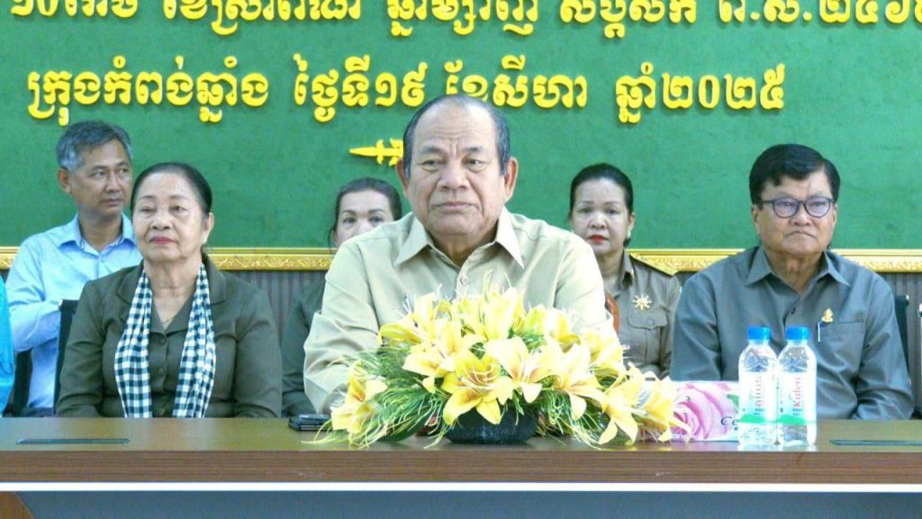 នាព្រឹកថ្ងៃអង្គារ ទី១៩ ខែសីហា ឆ្នាំ ២០២៥ នៅសាលប្រជុំរបស់រដ្ឋបាលក្រុងកំពង់ឆ្នាំង ខេត្តកំពង់ឆ្នាំង ឯកឧត្តម អ៊ឹង លាងហ៊ួ សមាជិកក្រុមសមាជិកព្រឹទ្ធសភាប្រចាំភូមិភាគទី៧ និងជាសមាជិកគណៈកម្មការទី៧ព្រឹទ្ធសភា បានអញ្ជើញចូលរួមពិធីសំណេះសំណាលជាមួយពលករដែលបានវិលត្រឡប់ពីប្រទេសថៃចំនួន៣៩គ្រួសារ និងគ្រួសារកងទ័ពដែលកំពុងឈរជើងនៅបន្ទាត់ព្រំដែនចំនួន១៩គ្រួសារ ក្រោមអធិបតីភាពដ៏ខ្ពង់ខ្ពស់ ឯកឧត្តមបណ្ឌិតសភាចារ្យ អ៊ុក រ៉ាប៊ុន ទេសរដ្ឋមន្ត្រីទទួល បន្ទុកបេសកកម្មពិសេស ដោយមានការចូលរួមលោកជំទាវអ្នកតំណាងរាស្ត្រមណ្ឌលខេត្តកំពង់ឆ្នាំង លោកជំទាវក្រុមការងាររាជរដ្ឋាភិបាលចុះក្រុងកំពង់ឆ្នាំង និងសហការី ក្រុមប្រឹក្សាខេត្ត គណៈអភិបាលខេត្ត ក្រុមប្រឹក្សាក្រុង គណៈអភិបាលក្រុង ព្រមទាំងចៅសង្កាត់ទាំង៤ក្នុងក្រុងផងដែរ។
