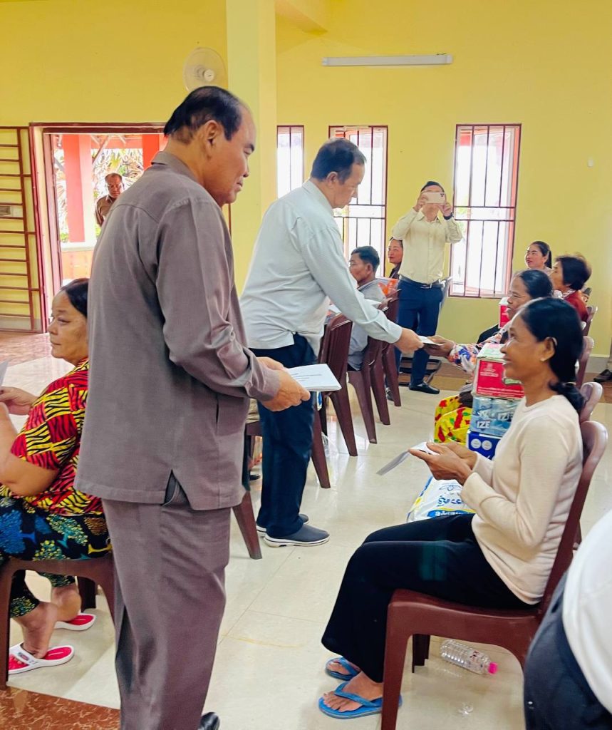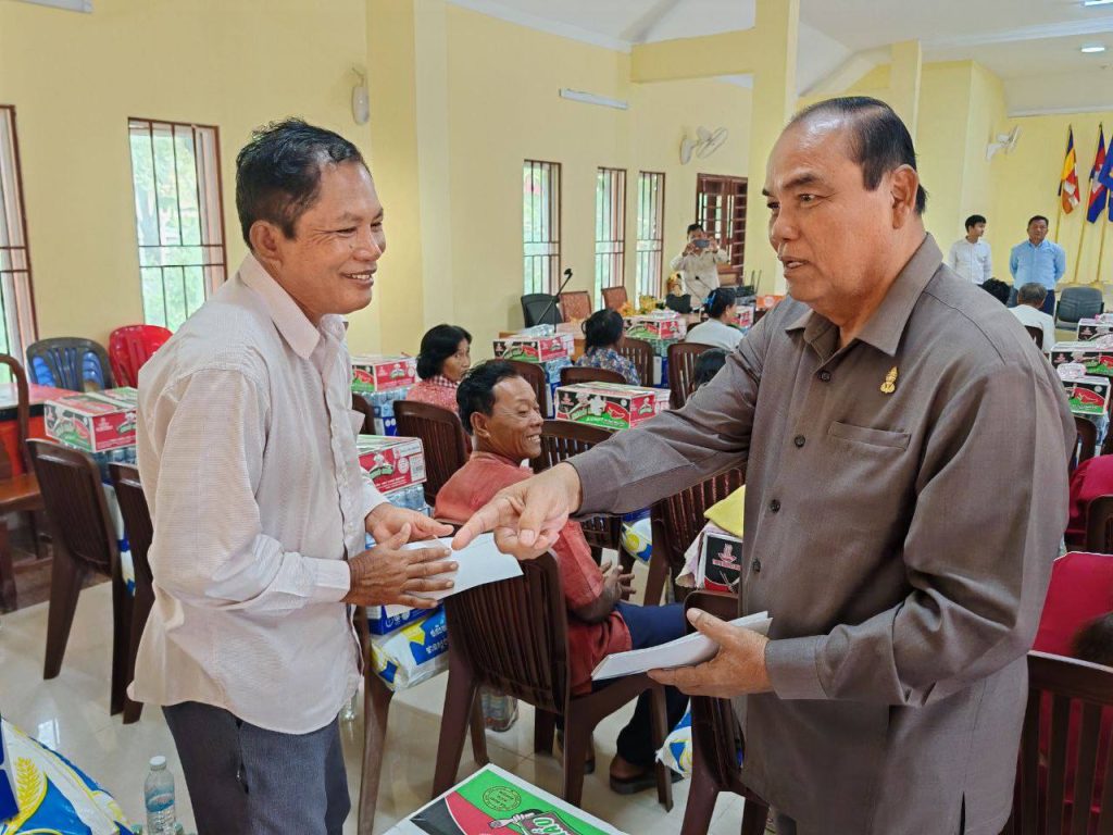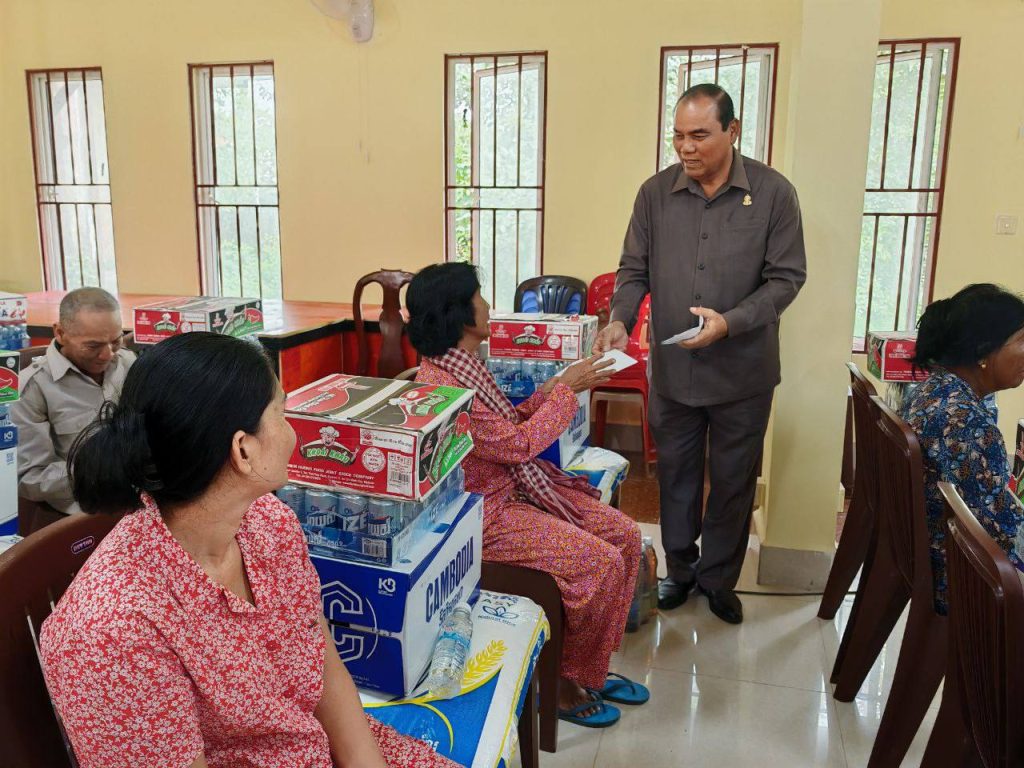 នារសៀលថ្ងៃទី២៦ ខែសីហា ឆ្នាំ២០២៥ ឯកឧត្ដម គិន ណែត លេខាធិការក្រុមសមាជិកព្រឹទ្ធសភាប្រចាំភូមិភាគទី៥ បានអញ្ជើញចុះជួបសំណេះសំណាលសួរសុខទុក្ខ និងចែកអំណោយជូនដល់គ្រួសារវីរកងទ័ពជួរមុខការពារព្រំដែន ចំនួន៤៥គ្រួសារ ដោយក្នុង១គ្រួសារទទួលបាន អង្ករ២០ គីឡូក្រាម មី១កេស ទឹកក្រូច១កេស ទឹកបរិសុទ្ធ១កេស ទឹកត្រី១យួរ និងថវិកា ១០០,០០០៛ ។