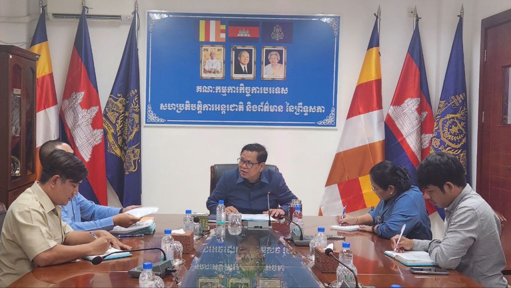 នាថៃ្ងចន្ទ ទី១៥ ខែកញ្ញា ឆ្នាំ ២០២៥ ឯកឧត្ដម ឆាយ វណ្ណា លេខាធិការគណៈកម្មការកិច្ចការបរទេស សហប្រតិបត្តិការអន្តរជាតិ និងព័ត៌មាន នៃព្រទ្ធសភា(គណៈកម្មការទី៥) បានអញ្ជើញដឹកនាំកិច្ចប្រជុំផ្ទៃក្នុងរបស់គណៈកម្មការ នៅបន្ទប់ប្រជុំគណៈកម្មការទី៥ព្រឹទ្ធសភា។