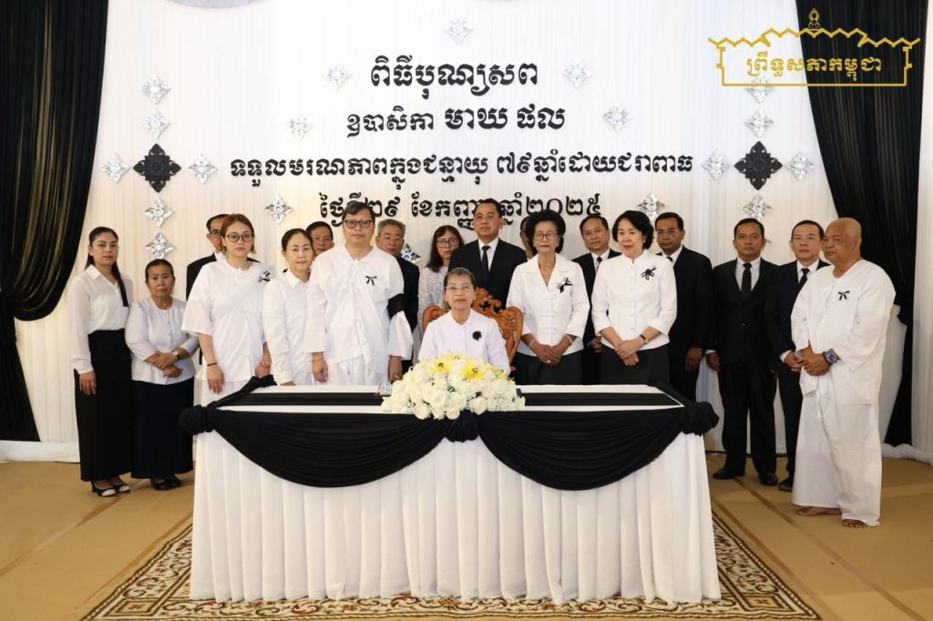 នាព្រឹកថ្ងៃទី៣០ ខែកញ្ញា ឆ្នាំ២០២៥ សម្តេចកិត្តិសង្គហបណ្ឌិត ម៉ែន សំអន ឧត្តមប្រឹក្សាផ្ទាល់ព្រះមហាក្សត្រ និងជាប្រធានសមាគមនារីកម្ពុជាដើម្បីសន្តិភាព និងអភិវឌ្ឍន៍ បានដឹកនាំគណៈប្រតិភូសមាគមនារីកម្ពុជាដើម្បីសន្តិភាព និងអភិវឌ្ឍន៍ អញ្ជើញគោរពវិញ្ញាណក្ខន្ធសព ឧបាសិកាពុទ្ធសាសនូបត្ថម្ភក៏ មាឃ ផល ត្រូវជាម្តាយក្មេករបស់ឯកឧត្តម ឡាយ សំកុល អគ្គលេខាធិការព្រឹទ្ធសភា ដែលបានទទួលមរណភាព កាលពីថ្ងៃចន្ទ ៧កើត ខែអស្សុជ ឆ្នាំម្សាញ់ សប្តស័ក ព.ស.២៥៦៩ ត្រូវនឹងថ្ងៃទី២៨ ខែកញ្ញា ឆ្នាំ២០២៥ វេលាម៉ោង ១២:០៩ នាទី ឆ្លងចូលថ្ងៃទី២៩ ក្នុងជន្មាយុ៧៩ឆ្នាំ ដោយជរាពាធ នៅភូមិជ្រោយអំពិល សង្កាត់ក្បាលកោះ ខណ្ឌច្បារអំពៅ រាជធានីភ្នំពេញ។