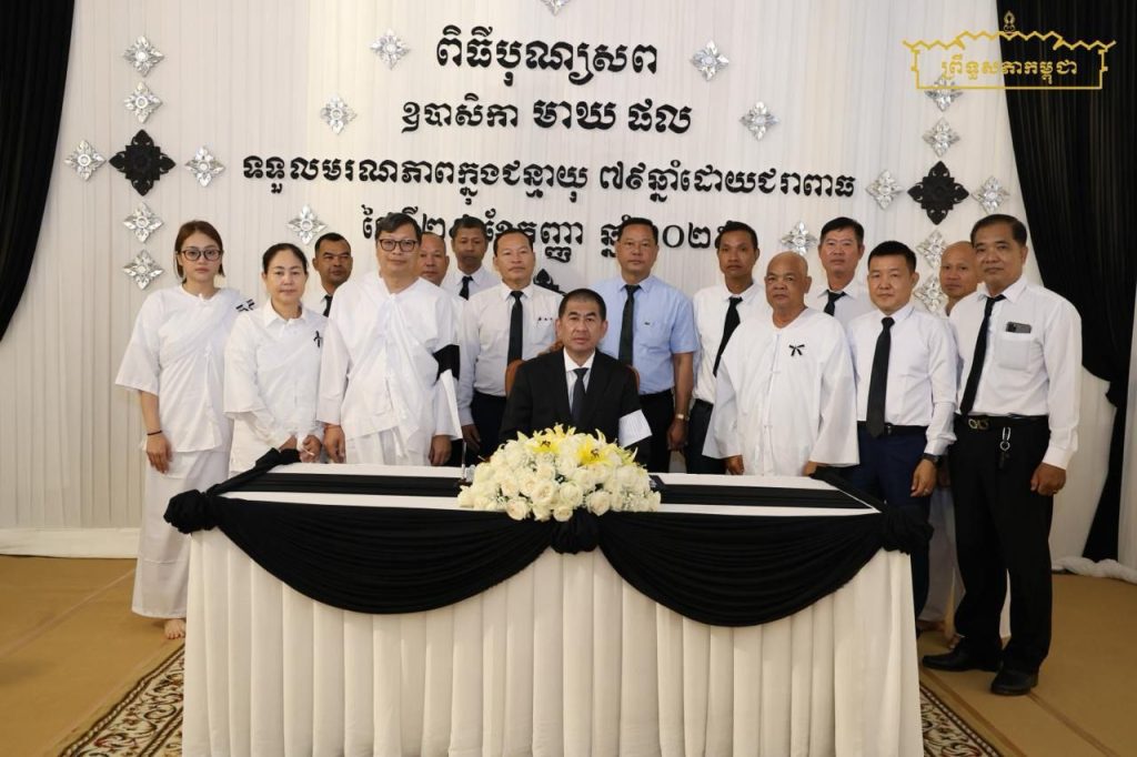 នាព្រឹកថ្ងៃទី៣០ ខែកញ្ញា ឆ្នាំ២០២៥ ឯកឧត្តម ឧត្តមសេនីយ៍ឯក យឹម លាង អគ្គស្នងការរងនគរបាលជាតិ បានដឹកនាំគណៈប្រតិភូអគ្គស្នងការនគរបាលជាតិ អញ្ជើញគោរពវិញ្ញាណក្ខន្ធសព ឧបាសិកាពុទ្ធសាសនូបត្ថម្ភក៏ មាឃ ផល ត្រូវជាម្តាយក្មេក ឯកឧត្តម ឡាយ សំកុល អគ្គលេខាធិការព្រឹទ្ធសភា ដែលបានទទួលមរណភាព កាលពីថ្ងៃចន្ទ ៧កើត ខែអស្សុជ ឆ្នាំម្សាញ់ សប្តស័ក ព.ស.២៥៦៩ ត្រូវនឹងថ្ងៃទី២៨ ខែកញ្ញា ឆ្នាំ២០២៥ វេលាម៉ោង ១២:០៩ នាទី ឆ្លងចូលថ្ងៃទី២៩ ក្នុងជន្មាយុ៧៩ឆ្នាំ ដោយជរាពាធ នៅភូមិជ្រោយអំពិល សង្កាត់ក្បាលកោះ ខណ្ឌច្បារអំពៅ រាជធានីភ្នំពេញ។
