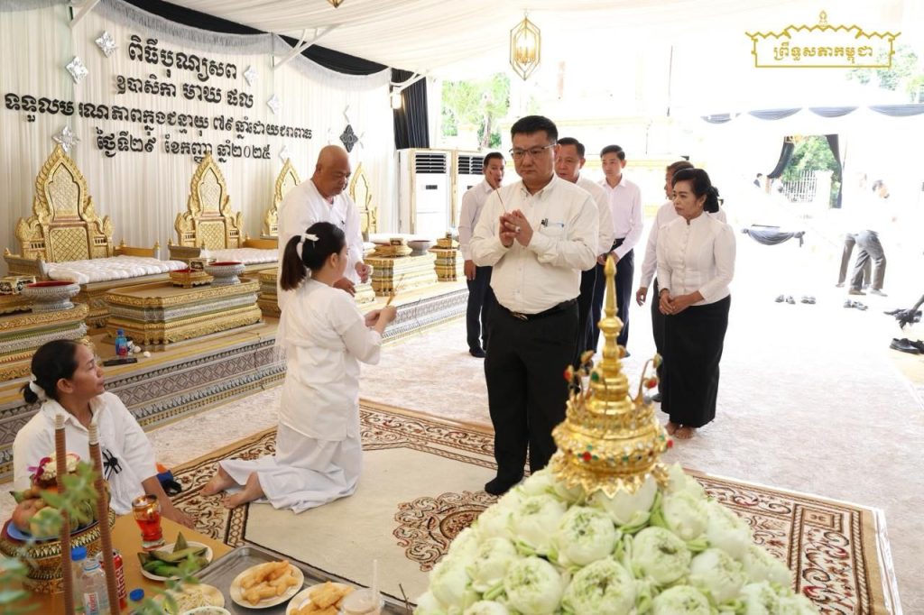 នាព្រឹកថ្ងៃទី០១ ខែតុលា ឆ្នាំ២០២៥ ឯកឧត្តម ហុង ឡុង រដ្ឋលេខាធិការ តំណាងឯកឧត្តមន ឆាយ ឬទ្ធិសែន រដ្ឋមន្ត្រីក្រសួងអភិវឌ្ឍន៍ជនបទ បានដឹកនាំគណៈប្រតិភូ អញ្ជើញគោរពវិញ្ញាណក្ខន្ធសព ឧបាសិកាពុទ្ធសាសនូបត្ថម្ភក៏ មាឃ ផល ត្រូវជាម្តាយក្មេក ឯកឧត្តម ឡាយ សំកុល អគ្គលេខាធិការព្រឹទ្ធសភា ដែលបានទទួលមរណភាព កាលពីថ្ងៃចន្ទ ៧កើត ខែអស្សុជ ឆ្នាំម្សាញ់ សប្តស័ក ព.ស.២៥៦៩ ត្រូវនឹងថ្ងៃទី២៨ ខែកញ្ញា ឆ្នាំ២០២៥ វេលាម៉ោង ១២:០៩ នាទី ឆ្លងចូលថ្ងៃទី២៩ ក្នុងជន្មាយុ៧៩ឆ្នាំ ដោយជរាពាធ នៅភូមិជ្រោយអំពិល សង្កាត់ក្បាលកោះ ខណ្ឌច្បារអំពៅ រាជធានីភ្នំពេញ។