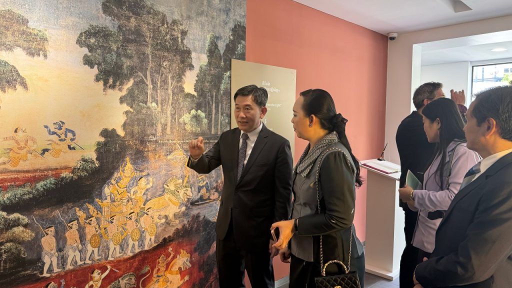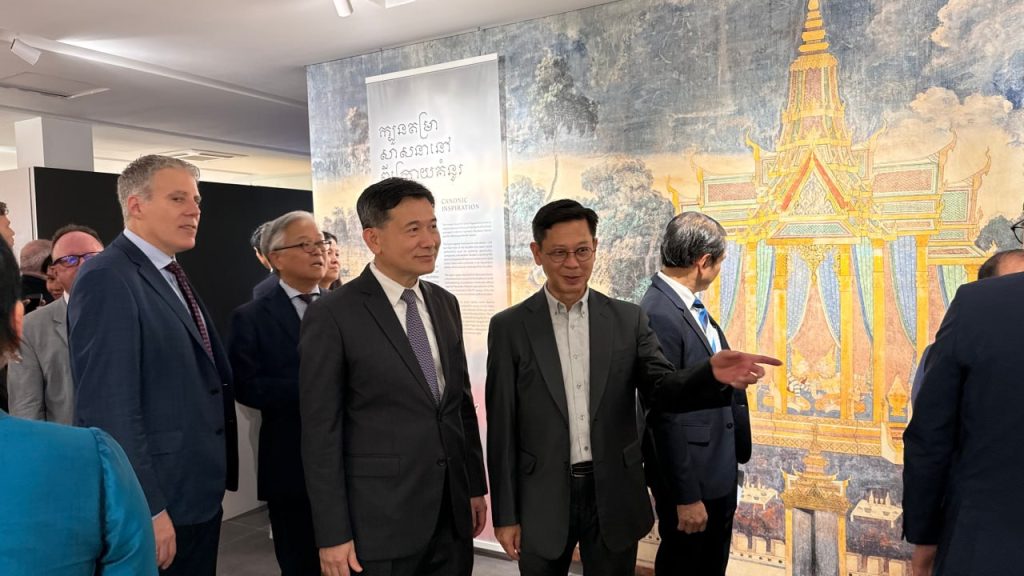 នាព្រឹកថ្ងៃទី៤ ខែតុលា ឆ្នាំ២០២៥ ឯកឧត្តម ឈីវ យីស៊ាង នាយកខុទ្ទកាល័យសម្តេចតេជោ ប្រធានព្រឹទ្ធសភា បានដឹកនាំប្រតិភូខុទ្ទកាល័យសម្តេចតេជោ ប្រធានព្រឹទ្ធសភា អញ្ជើញចូលរួមសម្ពោធពិព័រណ៍មិនអចិន្រ្តៃយ៍ «ការលេចត្រដែតឡើងវិញ៖ ការបាត់បង់ និងការរកឃើញឡើងវិញនូវគំនូរក្នុងវិហារព្រះកែវមរកតនៃព្រះបរមរាជវាំង» នៅសារមន្ទីរសេដ្ឋកិច្ច និងរូបិយវត្ថុ ព្រះស្រីឥឦសានវរ្ម័ន។