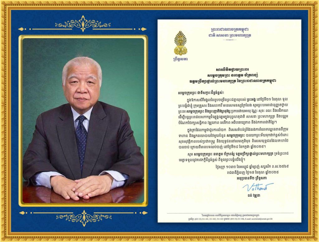 សារលិខិតថ្វាយព្រះពររបស់ឯកឧត្តមបណ្ឌិត ធន់ វឌ្ឍនា អនុប្រធានទី២ព្រឹទ្ធសភា ថ្វាយព្រះពរ សម្តេចក្រុមព្រះ នរោត្តម ច័ក្រពង្ស់ ឧត្តមប្រឹក្សាផ្ទាល់ព្រះមហាក្សត្រ នៃព្រះរាជាណាចក្រកម្ពុជា ក្នុងឱកាសសិរីមង្គលនៃខួបចម្រើនព្រះជន្មាយុរបស់ព្រះអង្គ នៅថ្ងៃទី២១ ខែតុលា ឆ្នាំ២០២៥