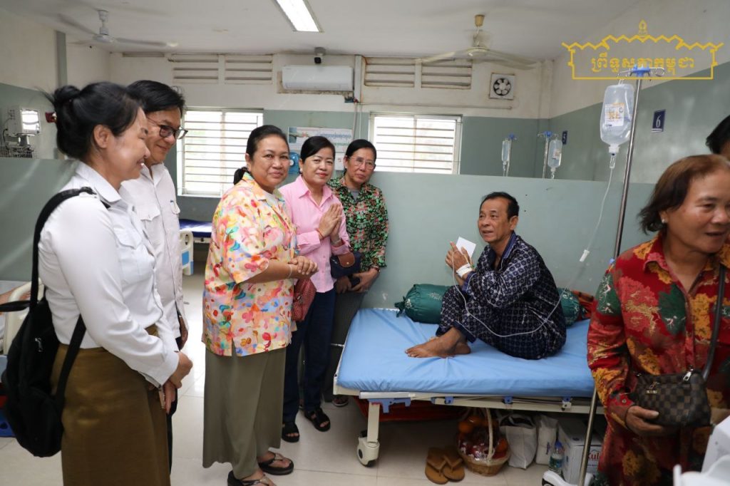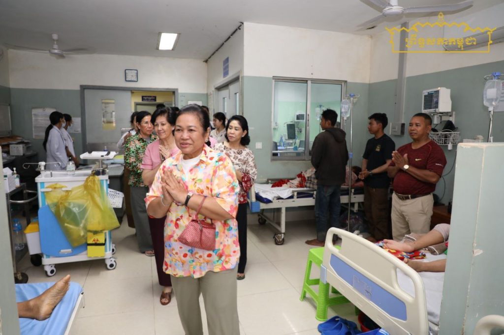លោកជំទាវប្រធានគណៈប្រតិភូ បាននាំយកប្រសាសន៍ផ្តាំផ្ញើសាកសួរសុខទុក្ខ និងក្តីបារម្ភខ្ពស់បំផុតរបស់សម្ដេចអគ្គមហាសេនាបតីតេជោ ប្រធានព្រឹទ្ធសភា ឯកឧត្តមអនុប្រធានទី១ព្រឹទ្ធសភា និងឯកឧត្តមបណ្ឌិតអនុប្រធានទី២ព្រឹទ្ធសភា ជូនចំពោះបងប្អូនប្រជាពលរដ្ឋទាំងអស់ប្រកបដោយសេចក្តីនឹករលឹក ព្រមទាំងបានជូនពរសូមឱ្យប្រជាពលរដ្ឋដែលកំពុងសម្រាកព្យាបាលនៅមន្ទីរពេទ្យទាំងអស់ឆាប់បានជាសះស្បើយ មានសុខភាពល្អប្រសើរឡើងវិញ និងបានវិលត្រឡប់ទៅជួបជុំគ្រួសាវិញ។