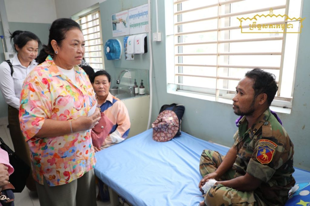 នារសៀលថ្ងៃចន្ទ ទី២៧ ខែតុលា ឆ្នាំ២០២៥ គណៈប្រតិភូគណៈកម្មការសុខាភិបាល សង្គមកិច្ច អតីតយុទ្ធជន យុវនីតិសម្បទា ការងារ បណ្តុះបណ្តាលវិជ្ជាជីវៈ និងកិច្ចការនារី នៃព្រឹទ្ធសភា (គណៈកម្មការទី៨) និងក្រុមសមាជិកាព្រឹទ្ធសភា ដឹកនាំដោយលោកជំទាវ មាន សំអាន ប្រធានគណៈកម្មការ និងជាប្រធានក្រុមសមាជិកា និងមានការយាងចូលរួមពី សម្តេចព្រះរាជបុត្រីព្រះអនុជ នរោត្តម អរុណរស្មី ឧត្តមប្រឹក្សាផ្ទាល់ព្រះមហាក្សត្រ នៃព្រះរាជាណាចក្រកម្ពុជា និងជាសមាជិកាព្រឹទ្ធសភា បានអញ្ជើញចុះជួបសួរសុខទុក្ខ និងនាំយកព្រះរាជអំណោយ អំណោយ និងថវិកាមួយចំនួនប្រគល់ជូនប្រជាពលរដ្ឋរងគ្រោះដោយគ្រាប់បែកចង្កោម នៅស្រុកជាំសាន្ត និងប្រជាពលរដ្ឋដែលកំពុងសម្រាកព្យាបាលជំងឺនៅមន្ទីរពេទ្យបង្អែកខេត្ត១៦មករា ខេត្តព្រះវិហារ។